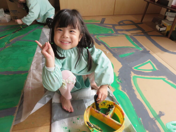 お部屋では室内遊びだけでなく、アートフェスティバルに向けての準備も盛んにおこなわれています