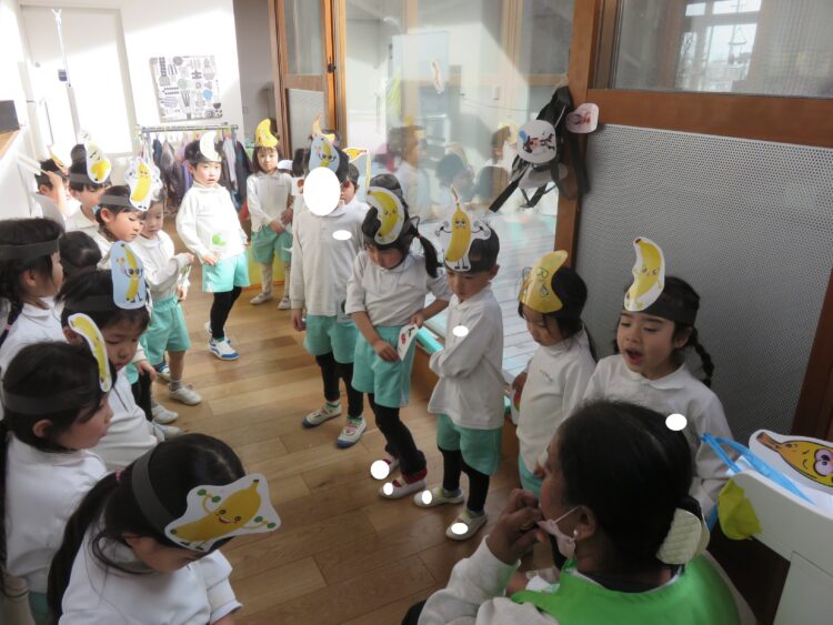 English Timeではバナナのお面を嬉しそうにかぶってレッツ ダンス![]()
