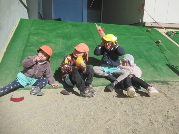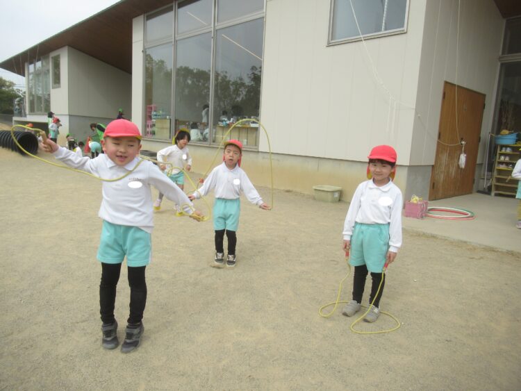ゆっくりひなたぼっこをしたり、縄跳びやポックリ、フープなどで好きな遊びを楽しみました。