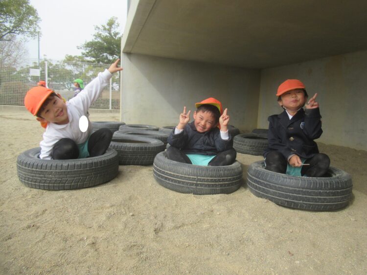 他にも、タイヤを温泉に見立てて、お風呂ごっこをしたり![]()