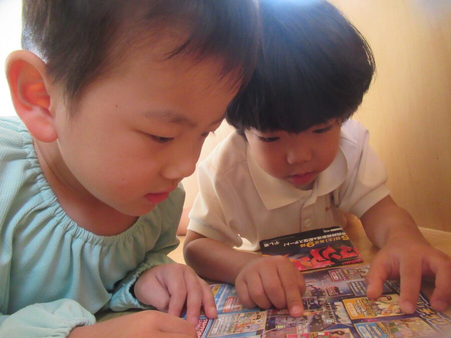 お友だちと真剣にチラシを眺めていますね![]()