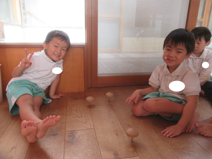 コマをさかさまに回したり、ブロックで遊んだり![]()