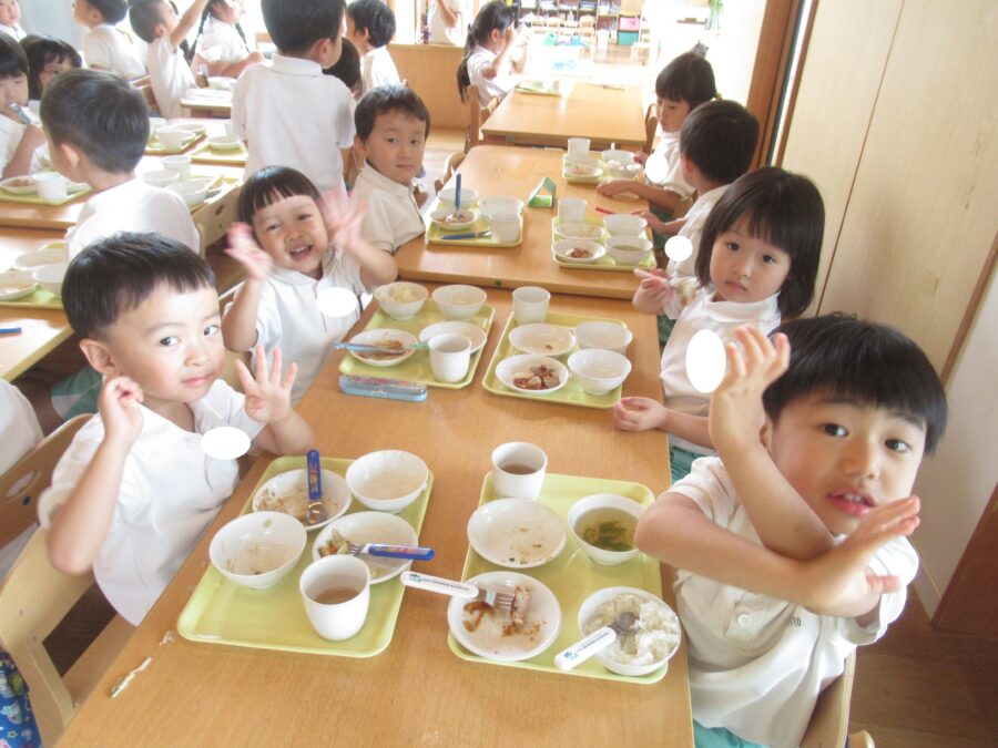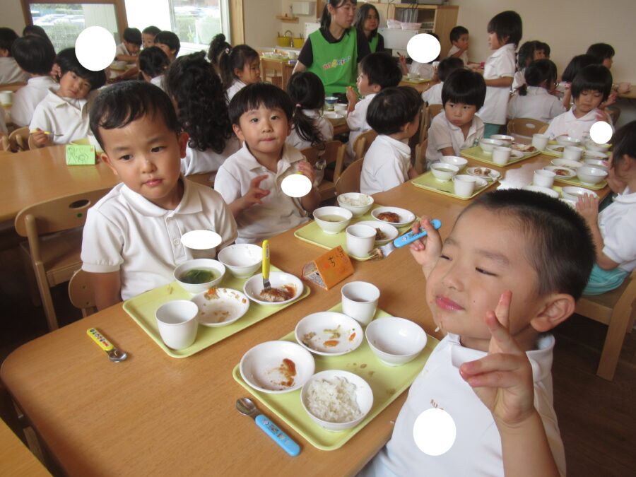 今日の給食はみんな大好きハンバーグ、残さずみんな食べられたかな…???