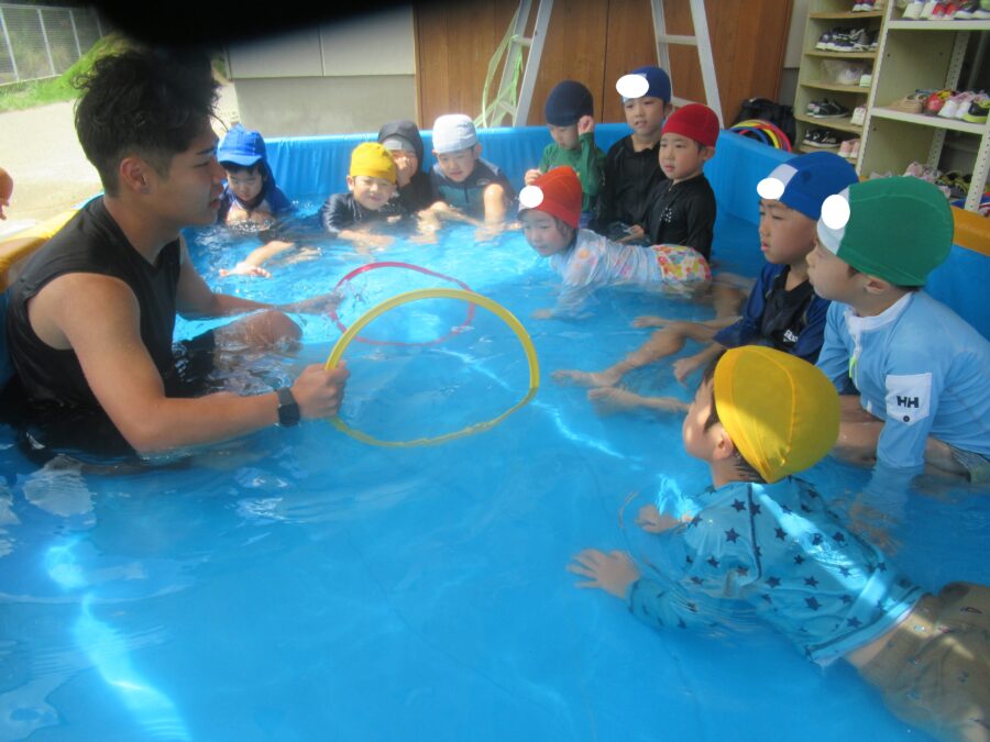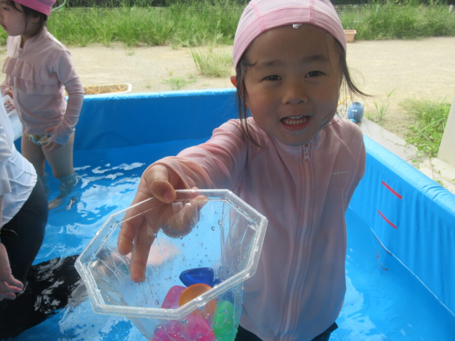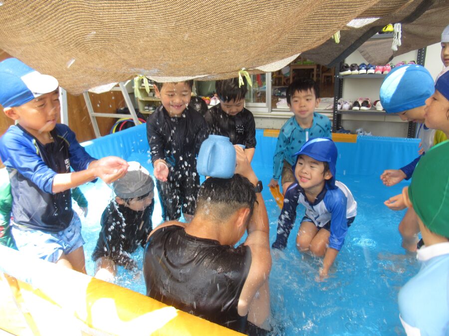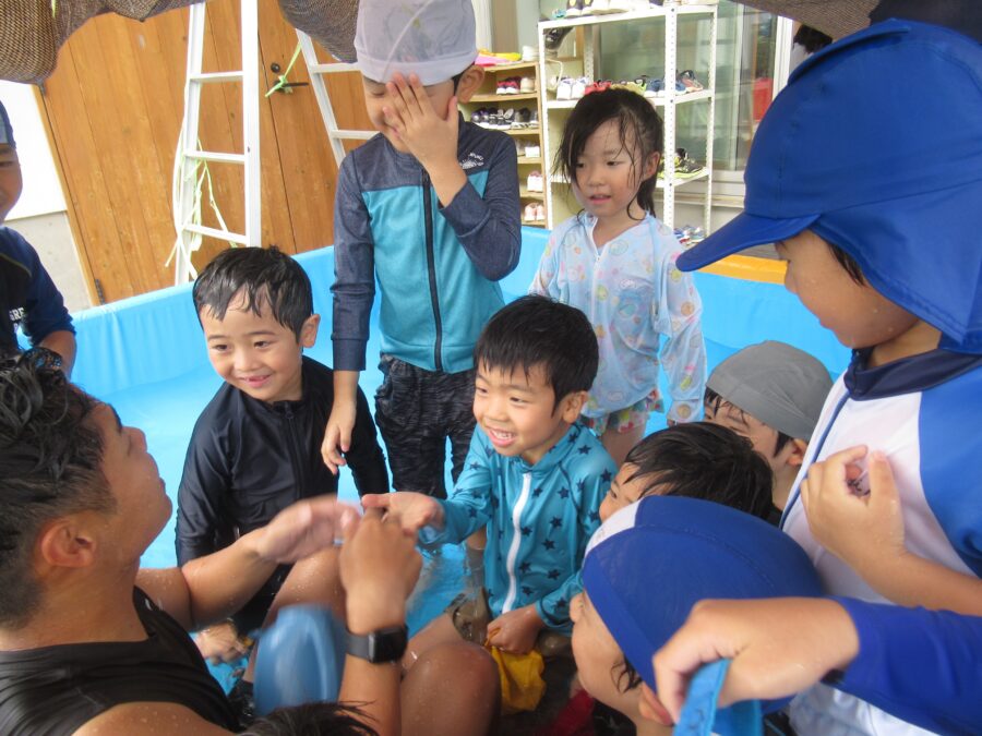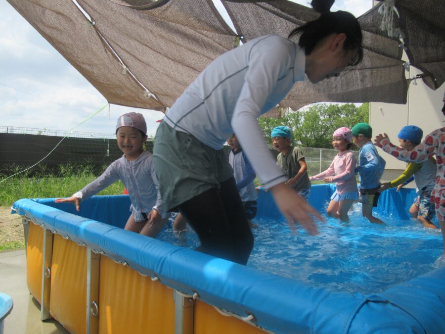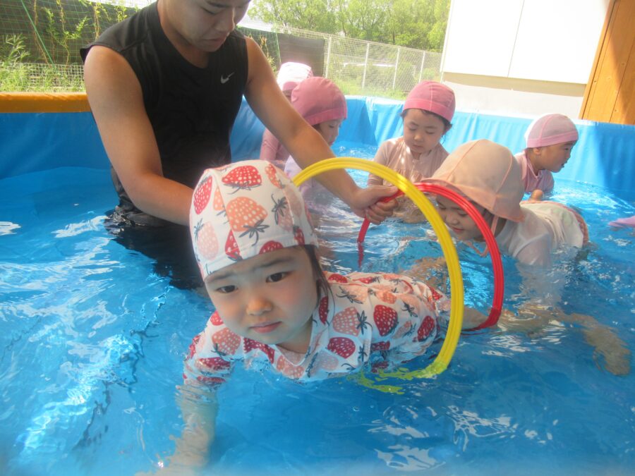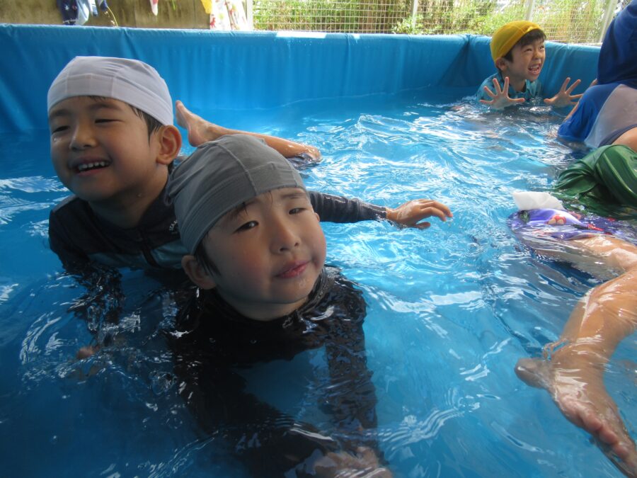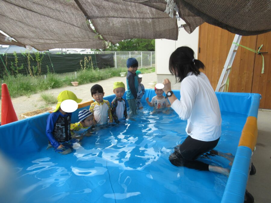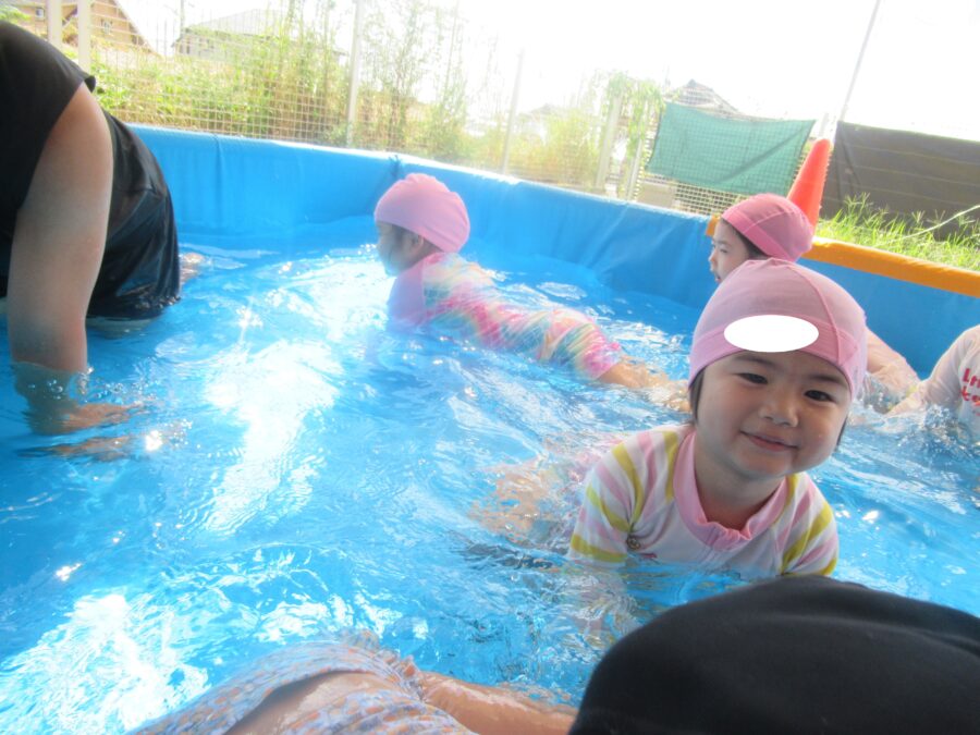 わくわくさんからプールに入りました!![]()