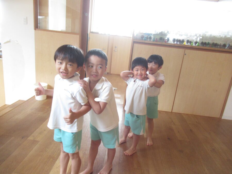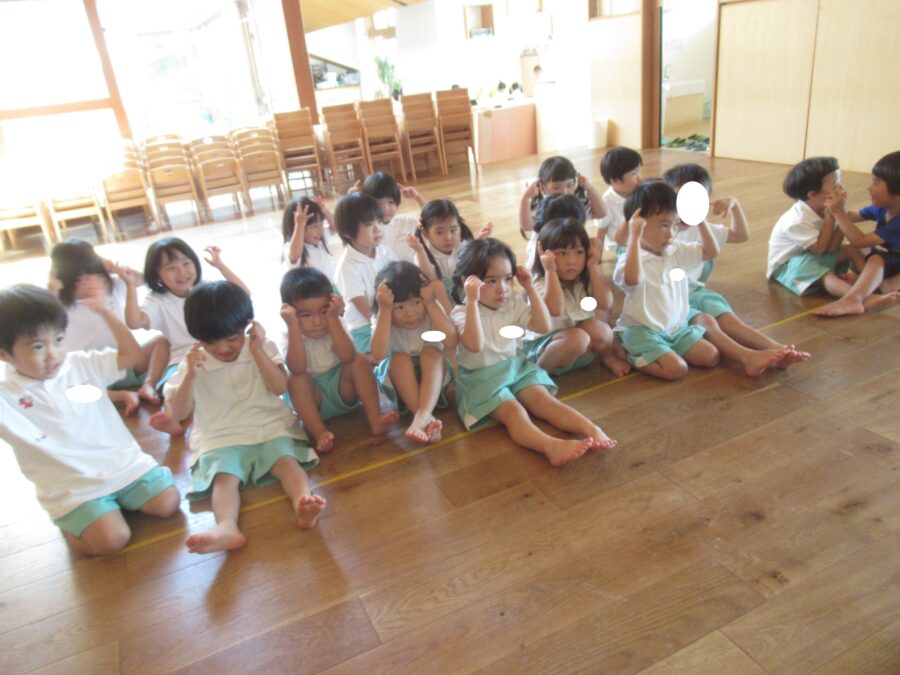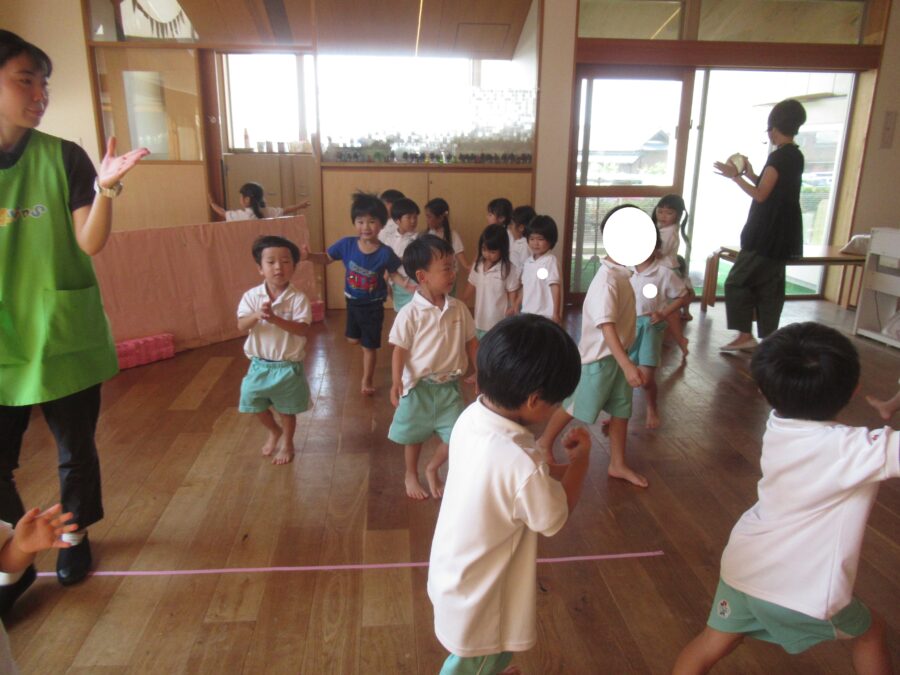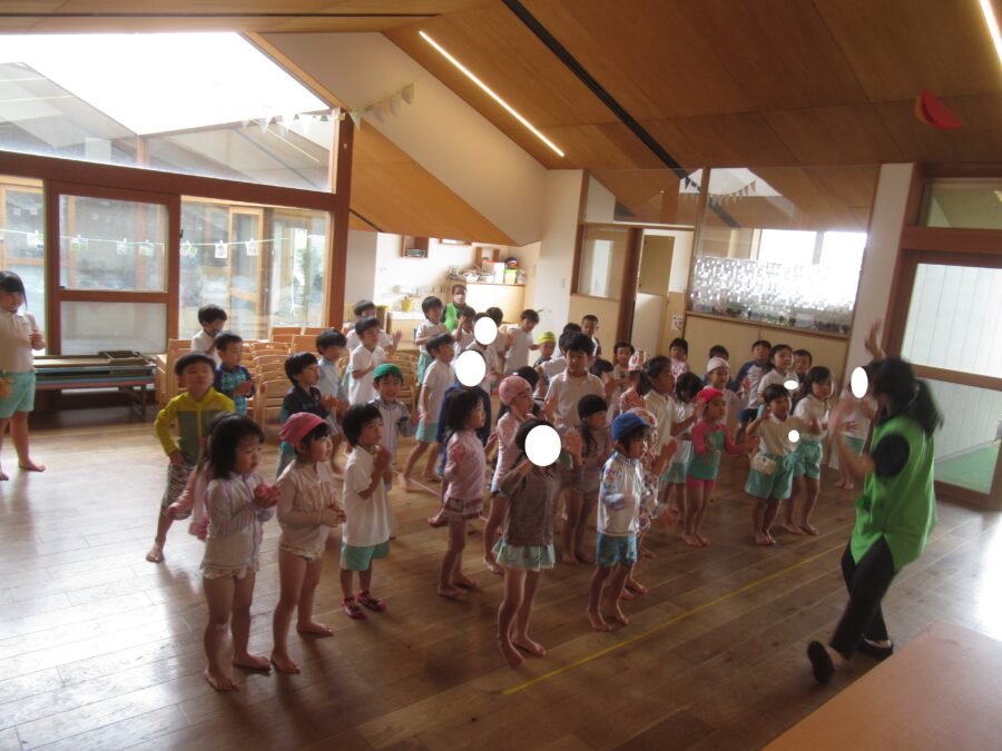 プールに入れなかったお友だちは室内で体操教室を行いましたよ