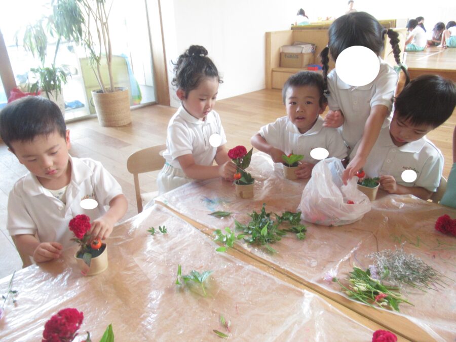 昨日お休みしていたお友だちはフラワーアートをやりました