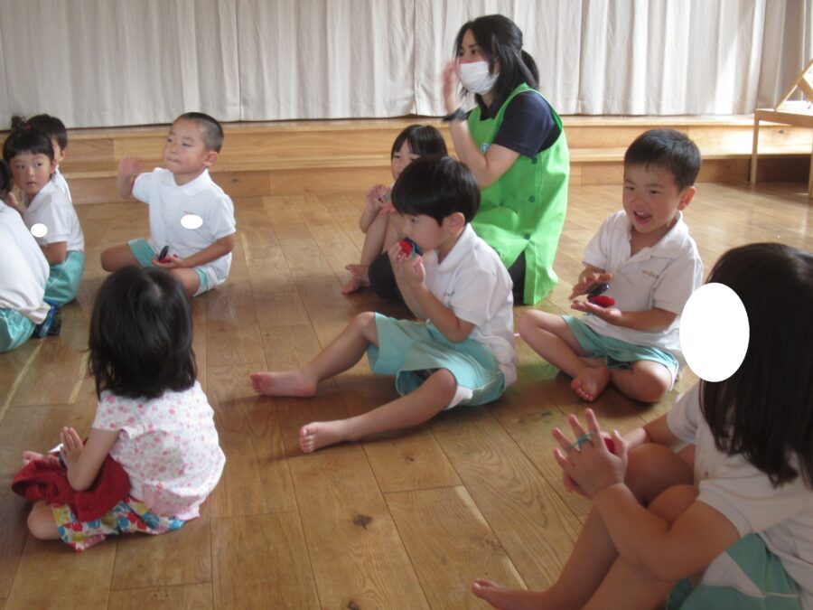 「うみ」の曲に合わせてカスタネットをたたきます![]()