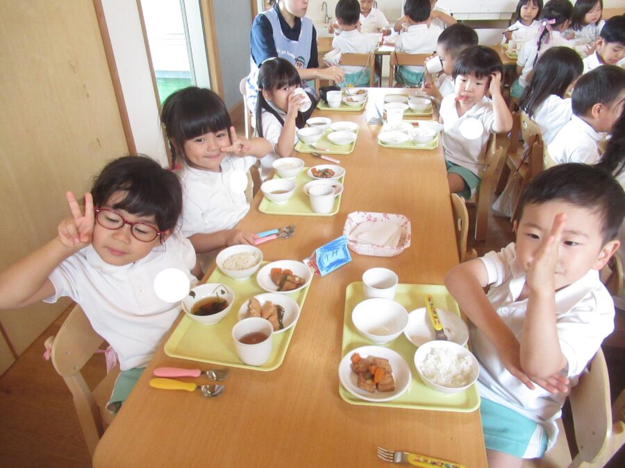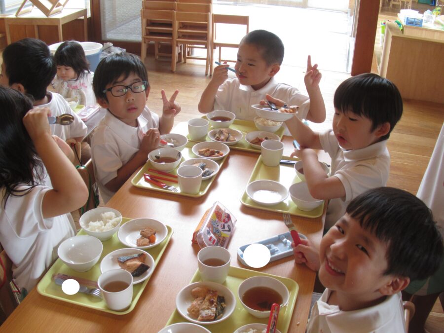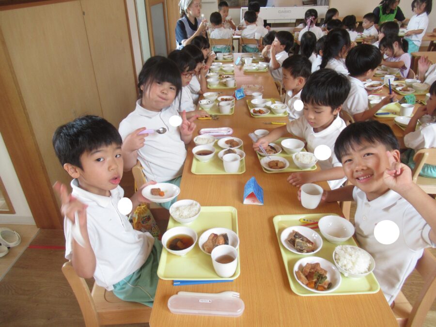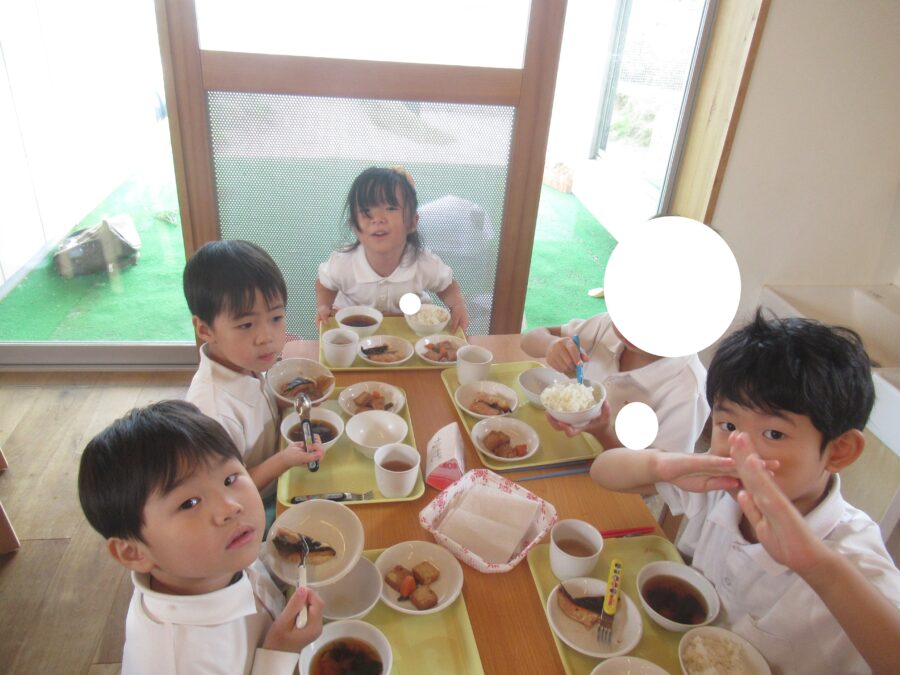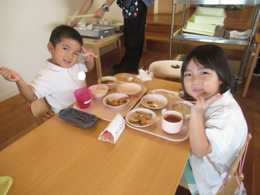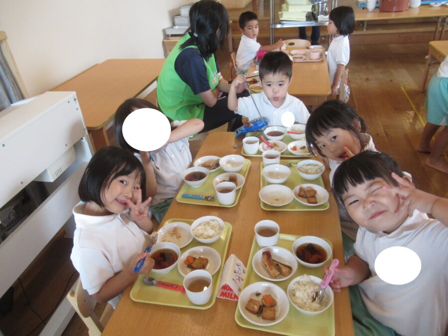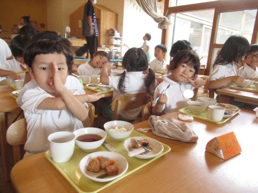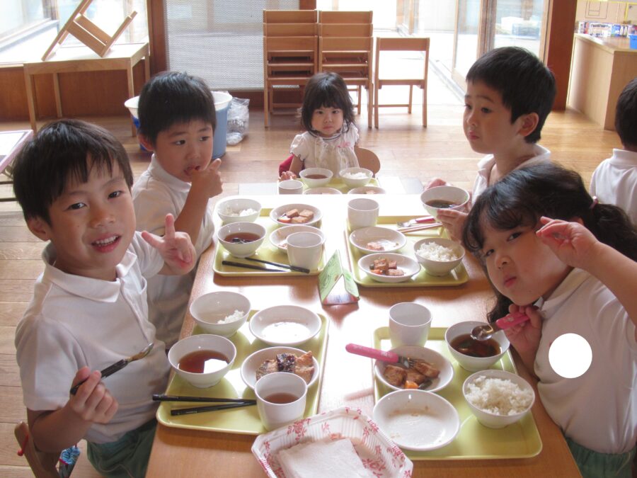 たくさん遊んだ後の給食は美味しいね![]()