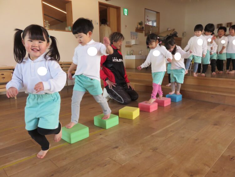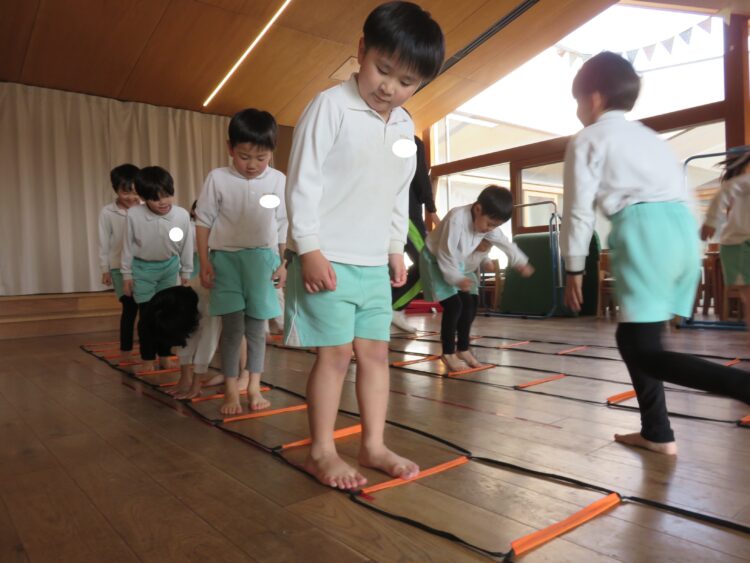 枠の中をグーグーパーやケンケンパーでジャンプします![]()