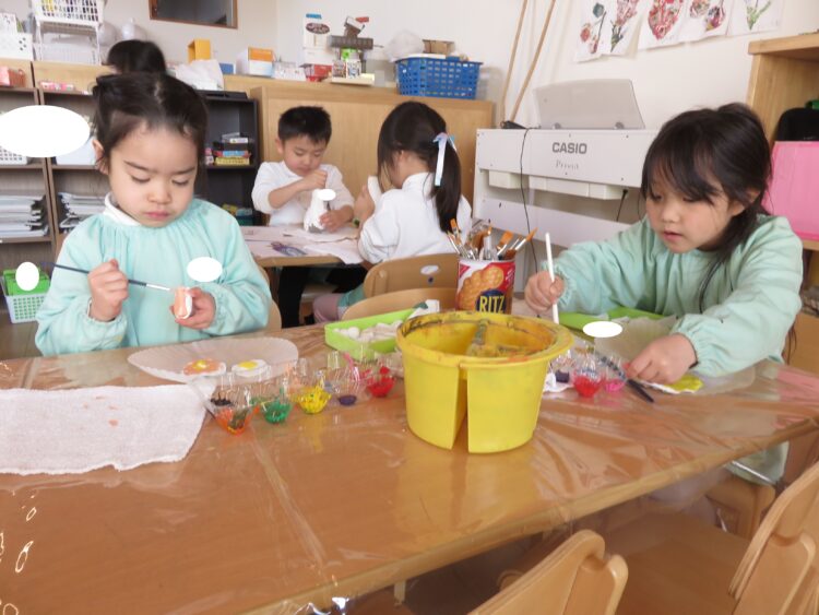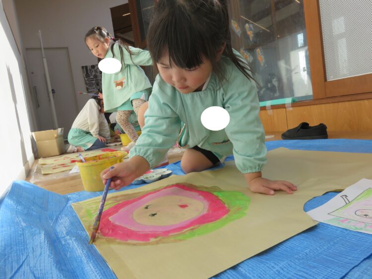 他にも、お部屋では粘土遊びや、絵の具でお絵描きをして過ごしました。