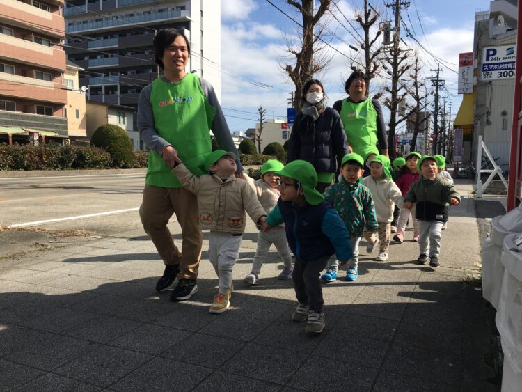 今日はお散歩に出かけ、園外を一周しました。
