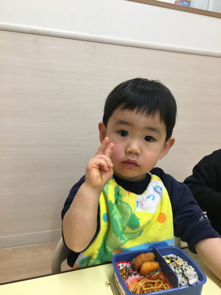 お散歩でたくさん歩いた後は、みんなが楽しみにしていたお弁当の時間🎶