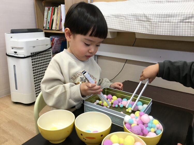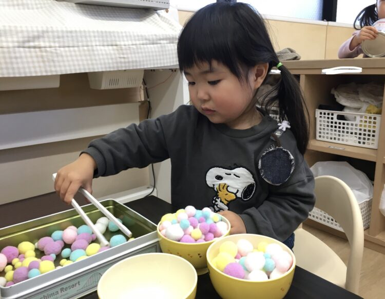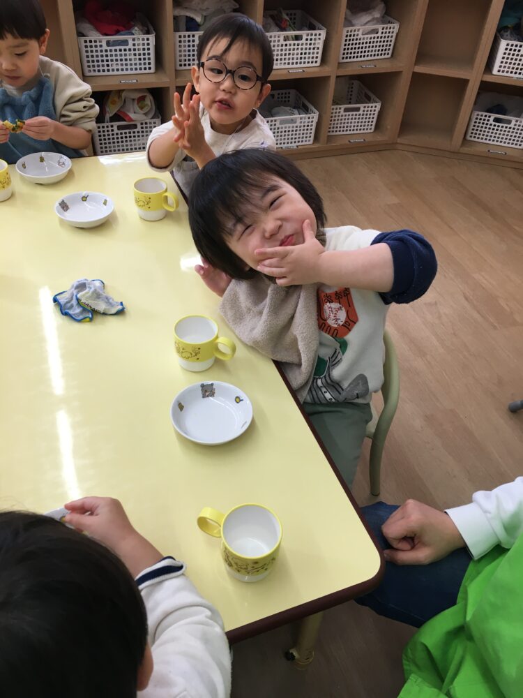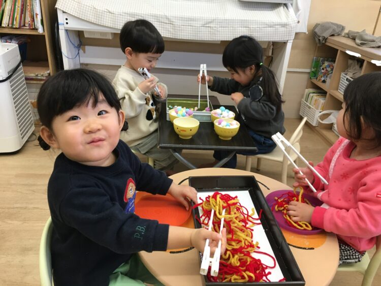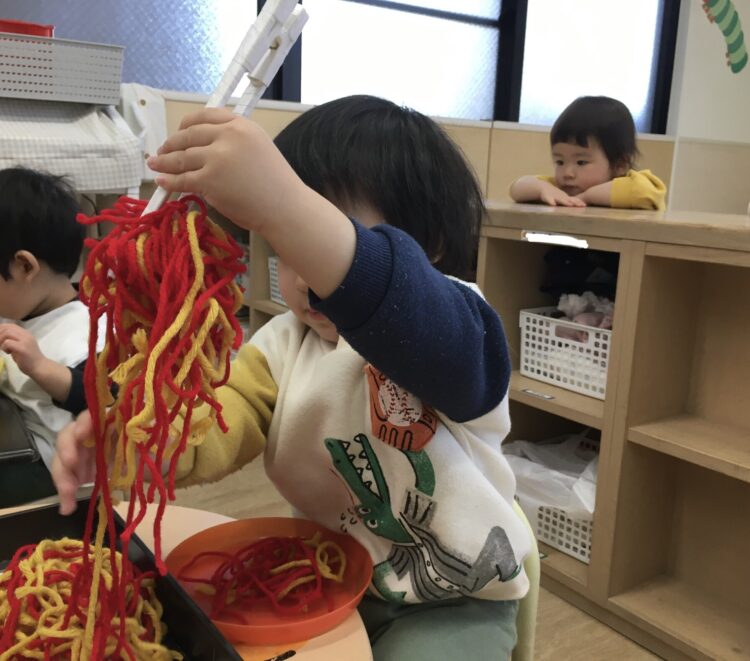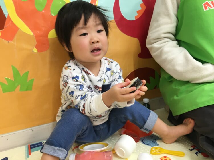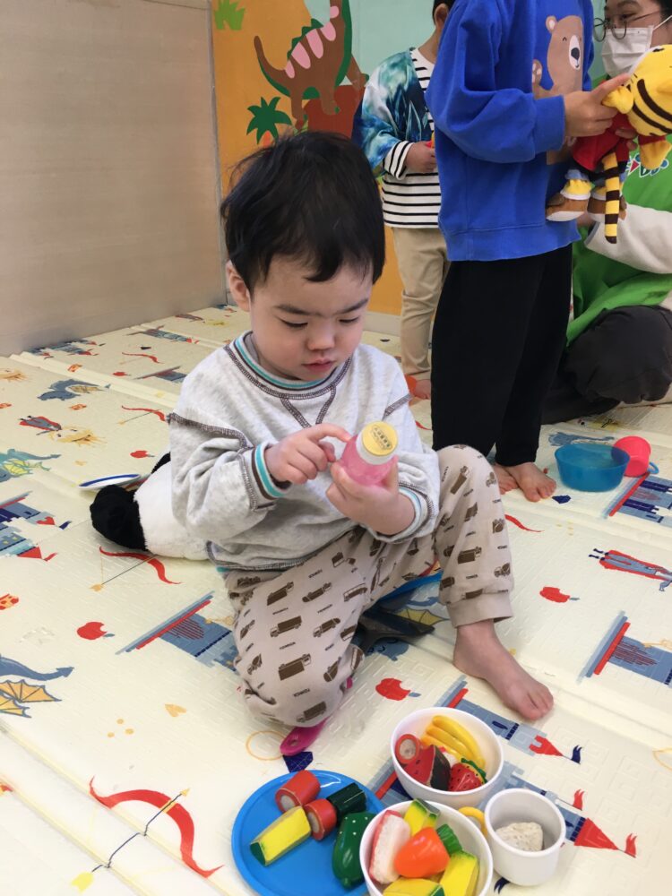 ばなな組さんは、食器や食材を使っていつも通りゆったりと遊んでいました😊