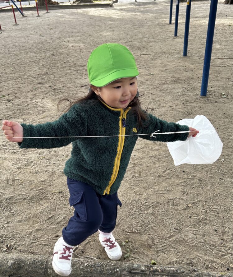 風が強かったので、すぐに袋の部分が膨らみ、凧揚げ日和となりました😊🪁