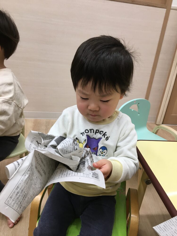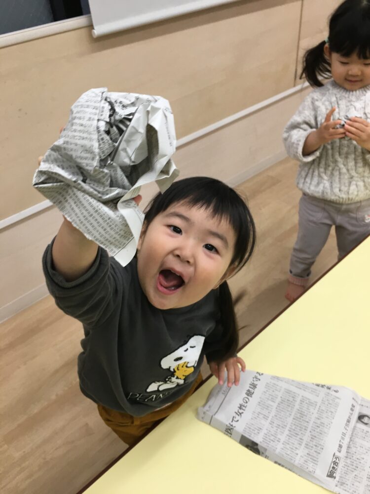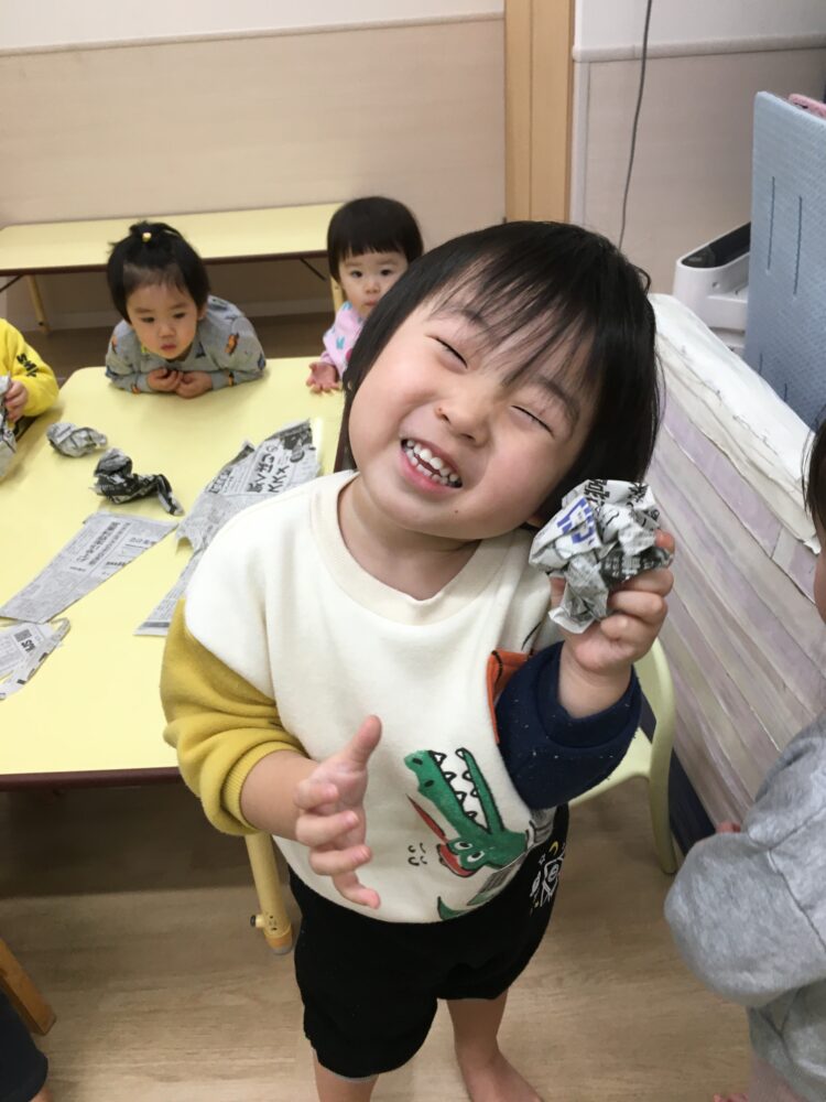 今日は新聞をクシャクシャに丸めて豆まき用の豆作りをしました☝️
