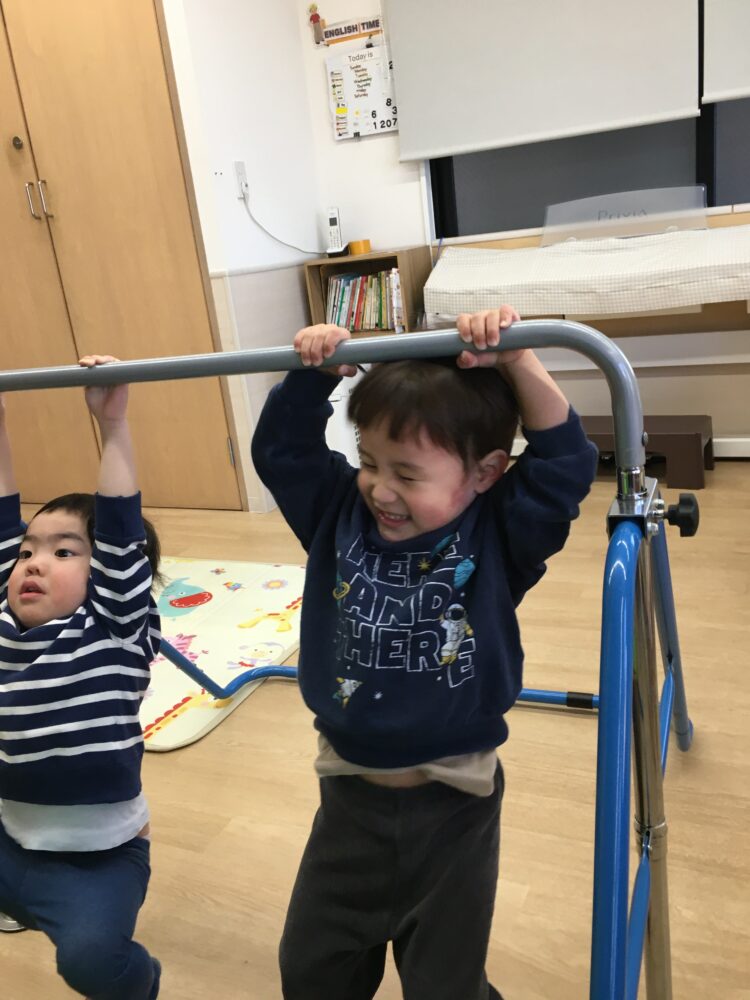 ジャンプを怖がっている子もいたのですが、先生の指を1本持たせてあげると勇気が湧いて飛べていましたよ♡