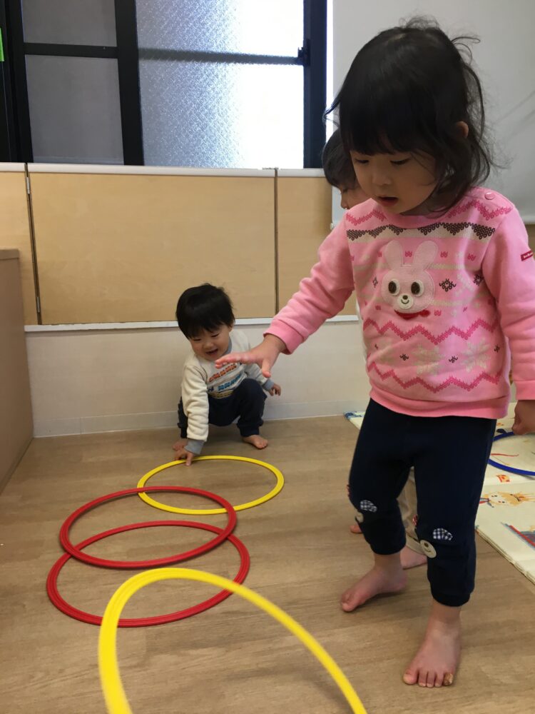 順番待ちが上手になっているので、サクサクと次の活動に進められて、鉄棒、マット、フープと盛りだくさんの内容をして楽しめました🍀