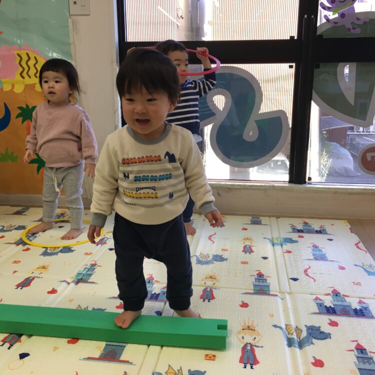 年上のお友達が走っている様子が楽しいいちご組さん🍀