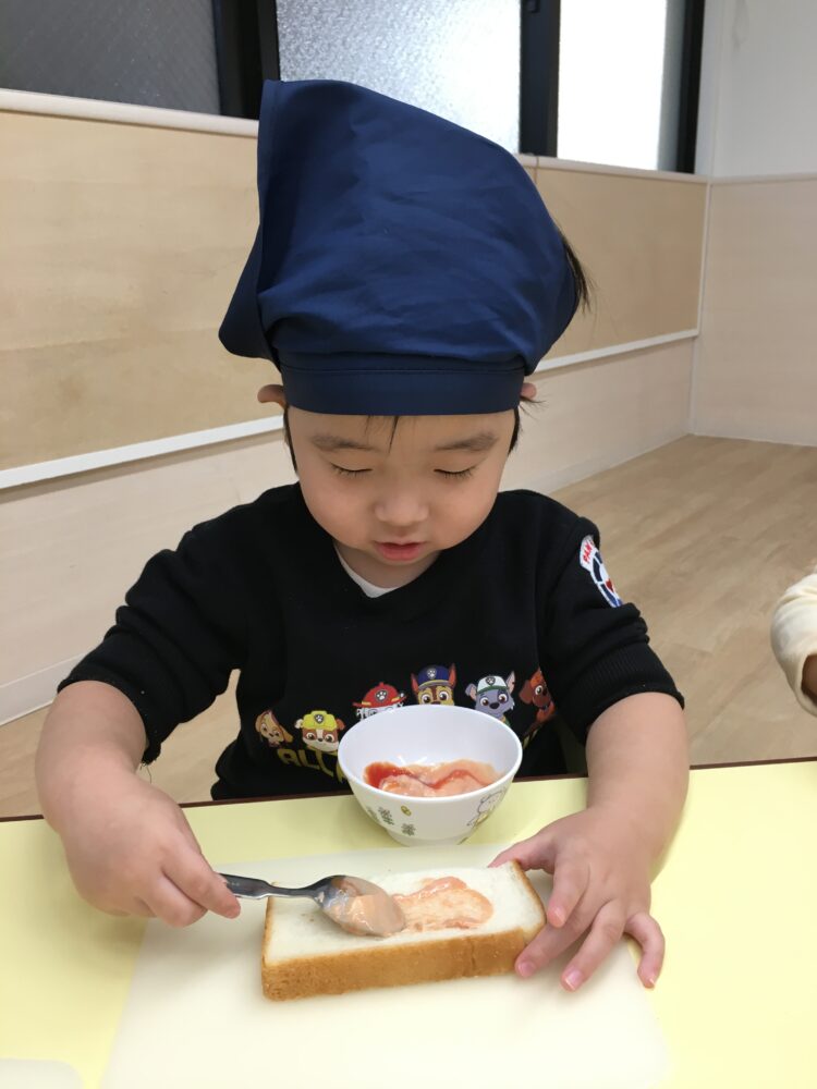 ソースを塗ったパンを焼いたら、ツナトーストのできあがり♡