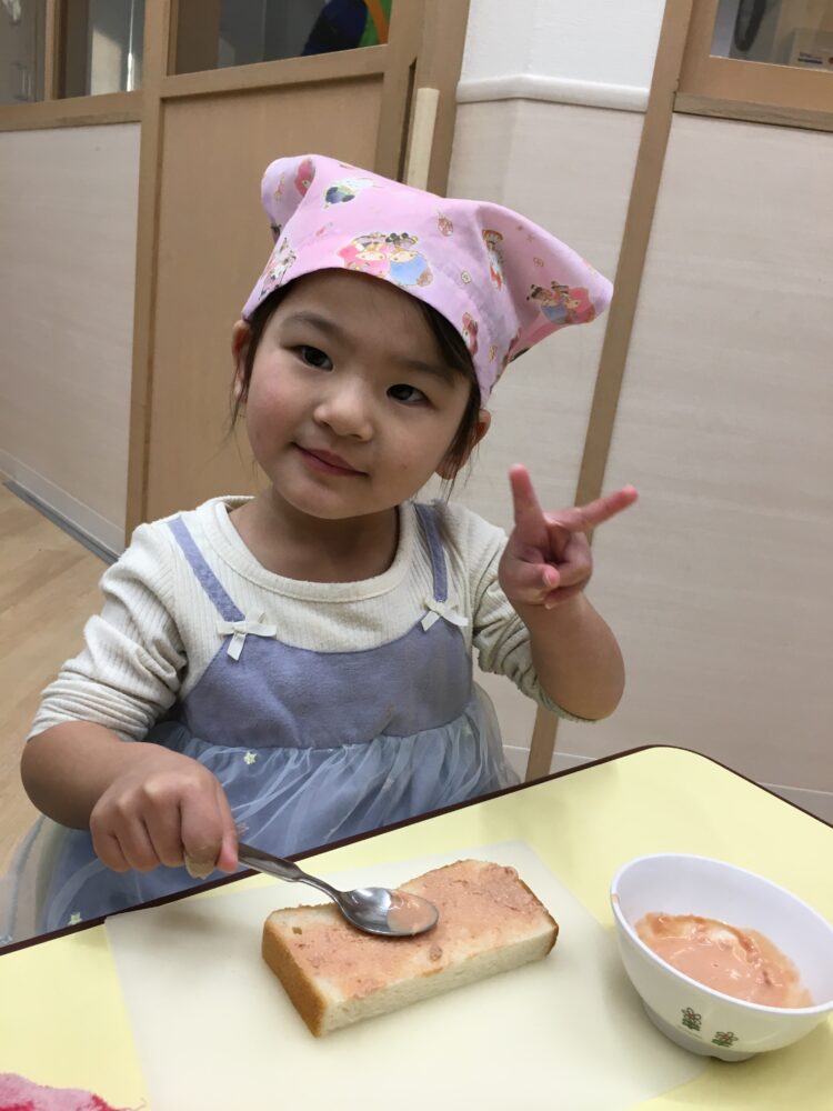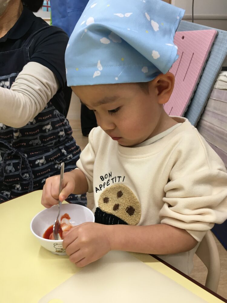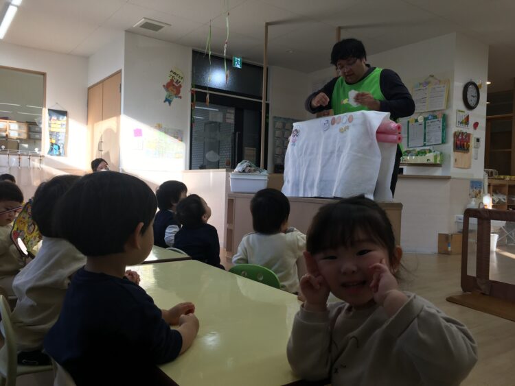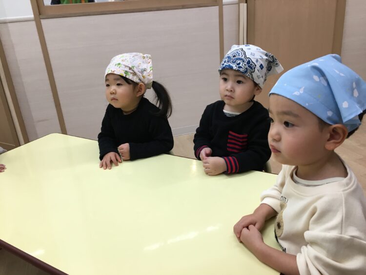どのように作るのか、先生のお手本を真剣に見ている子どもたちです。