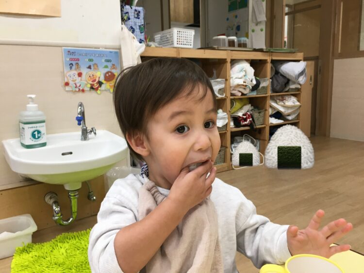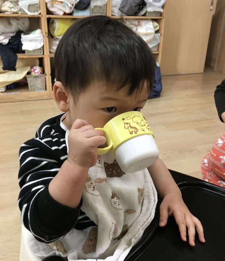 いちご組さんは、自分でコップを持って、上手に飲めるようになったね✨