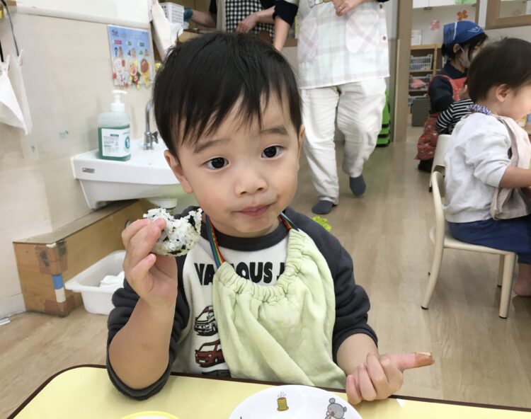 今日のおやつは、わかめおにぎり🍙