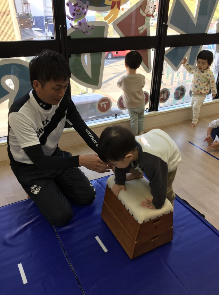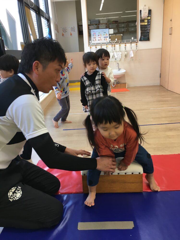 自分で跳び箱に登る力もついてきました。