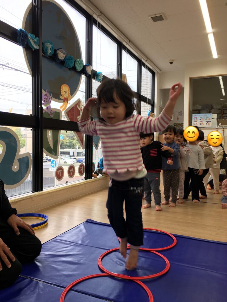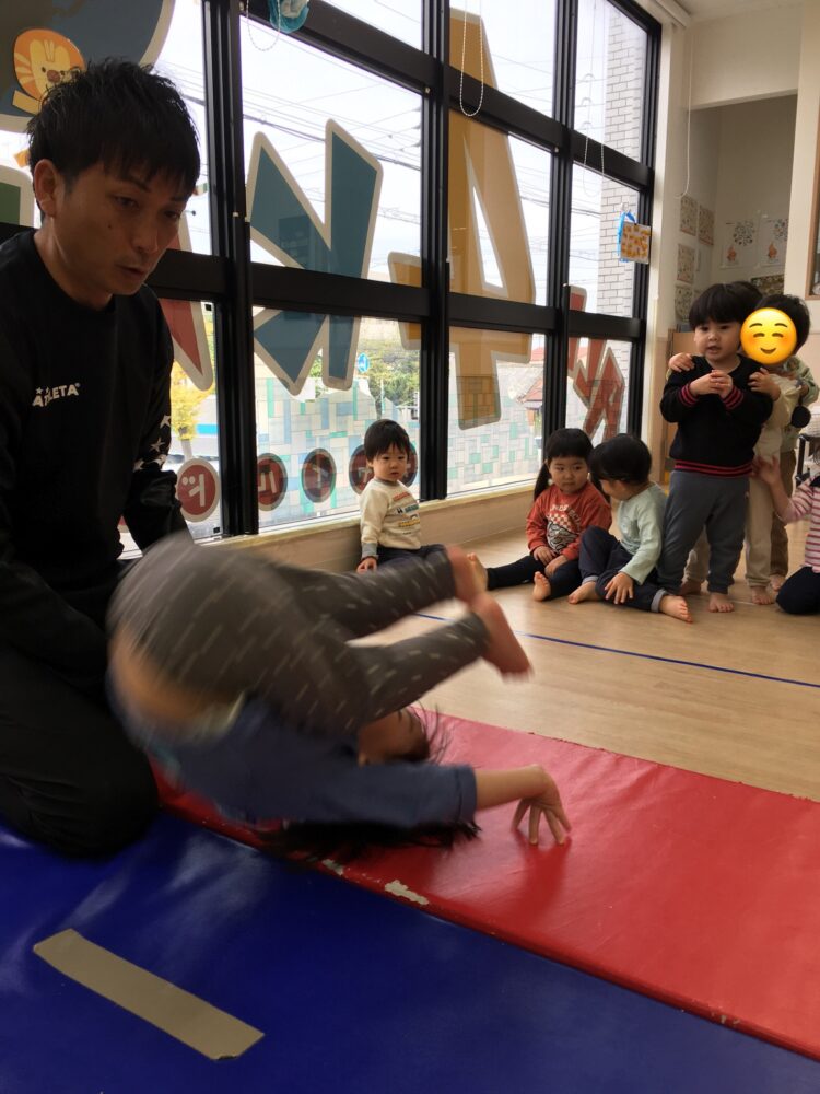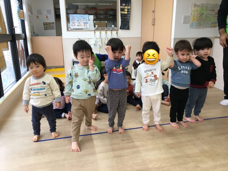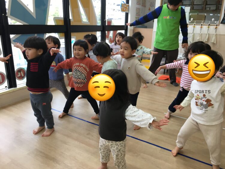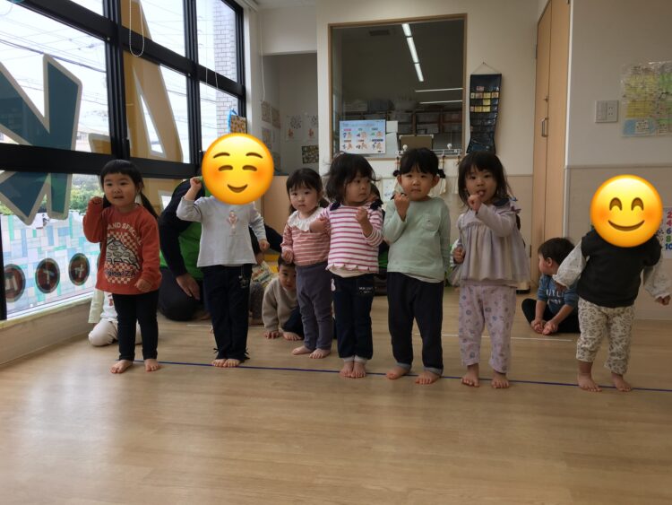 今日の体操教室は、めろん組とばなな組が合同で行いました。