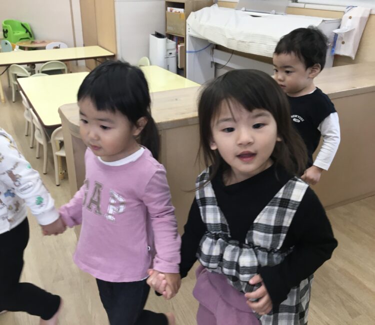ばなな組さんも、お友だちと手を繋いで歩くのがとても上手になりました!