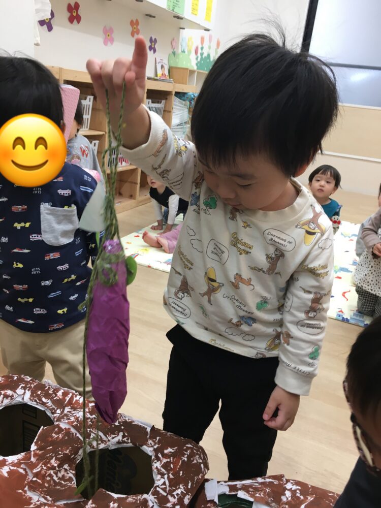 みんなで「うんとこしょ、どっこいしょ」と言いながら、さつまいもを抜きました。