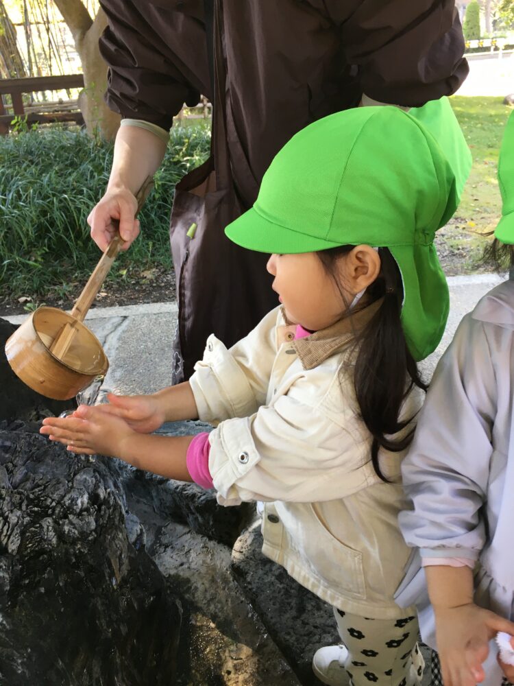 二礼二拍手一礼をしてから、「元気に大きくなれますように」とお願い事をしました。