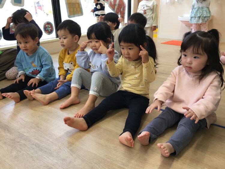 リトミックの始まりは、いつも、ご挨拶と『小さな世界』の曲に合わせた手拍子です。