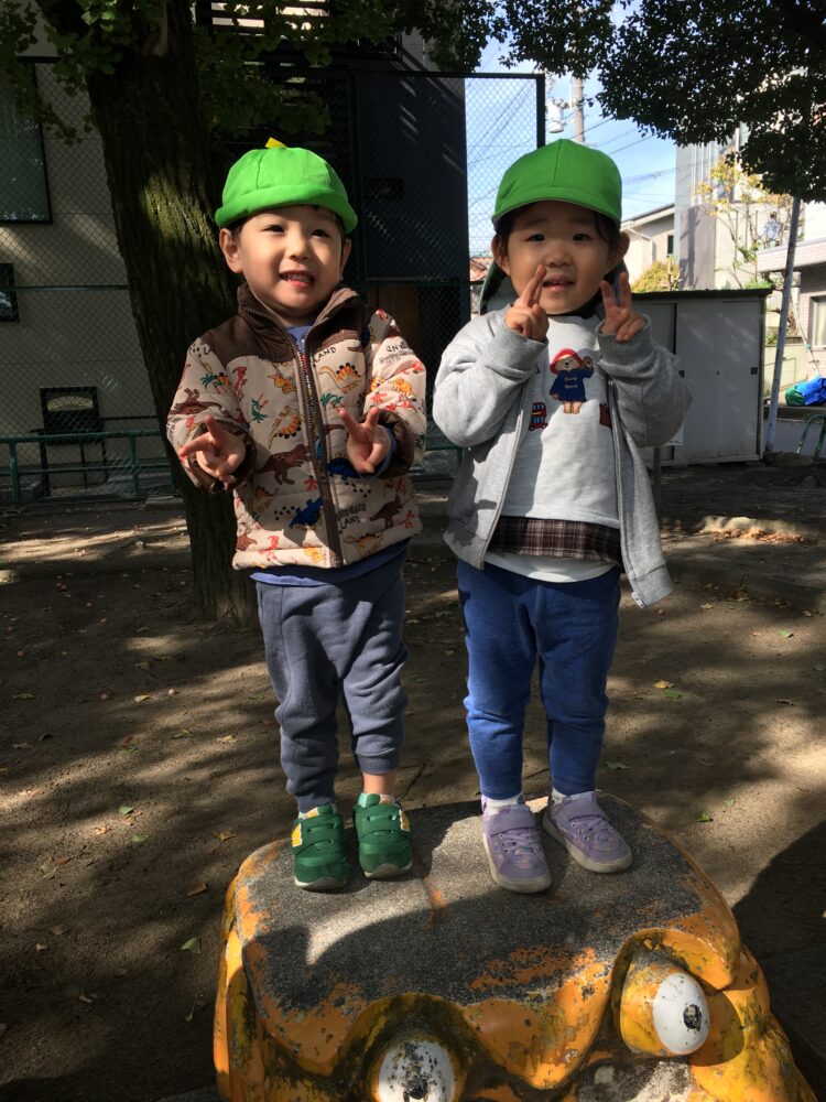 今日はお外にお出掛けして、公園でたくさん体を動かして遊びました!