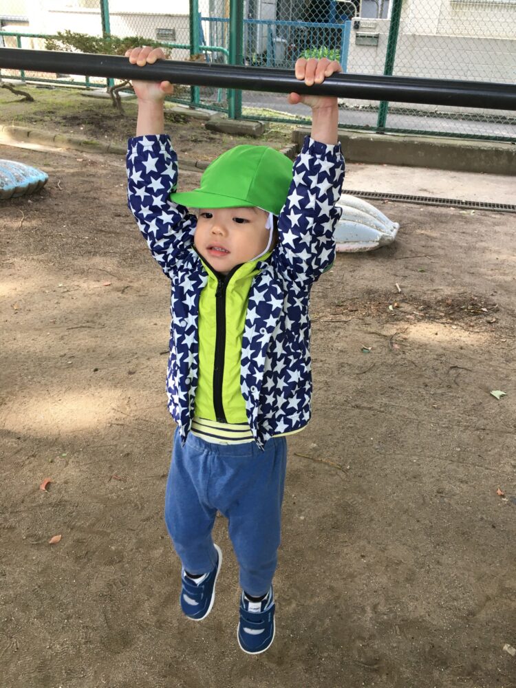 公園では、遊具や鉄棒、ブランコで元気いっぱい遊びました。