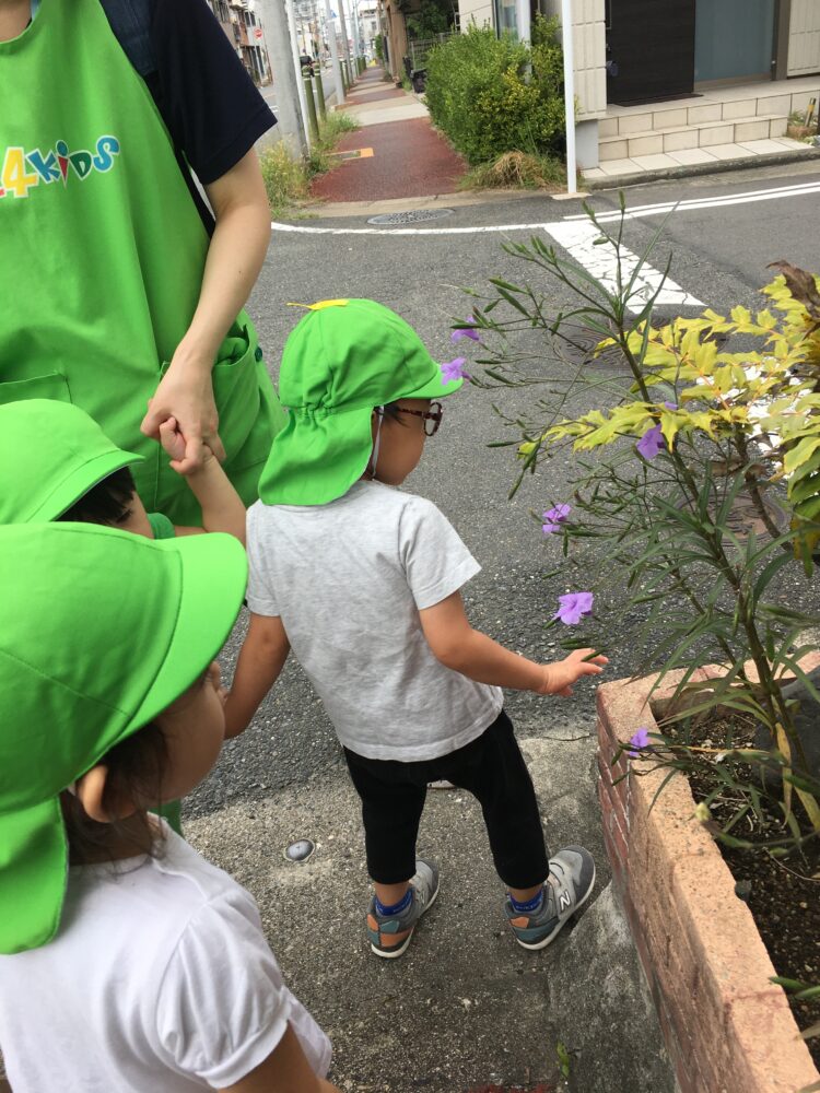 道の途中できれいな紫色のお花を見つけて、「これは何のお花かな?」とみんなで話しながら歩きました。