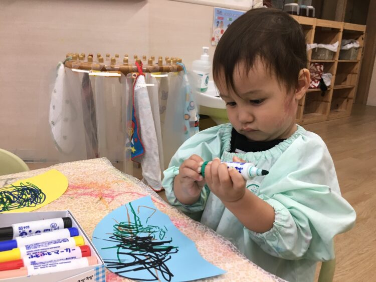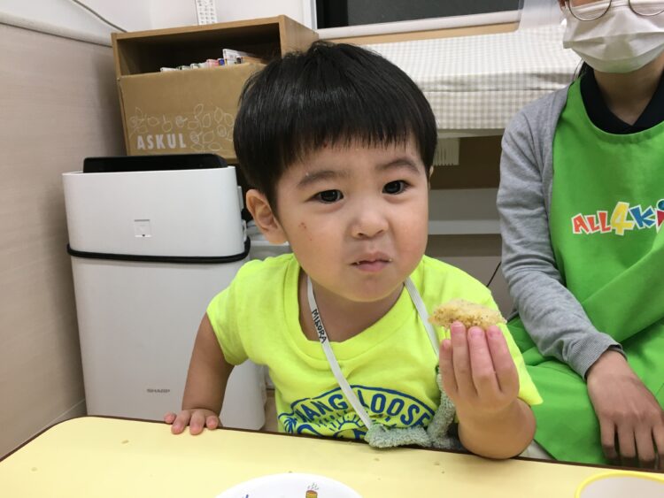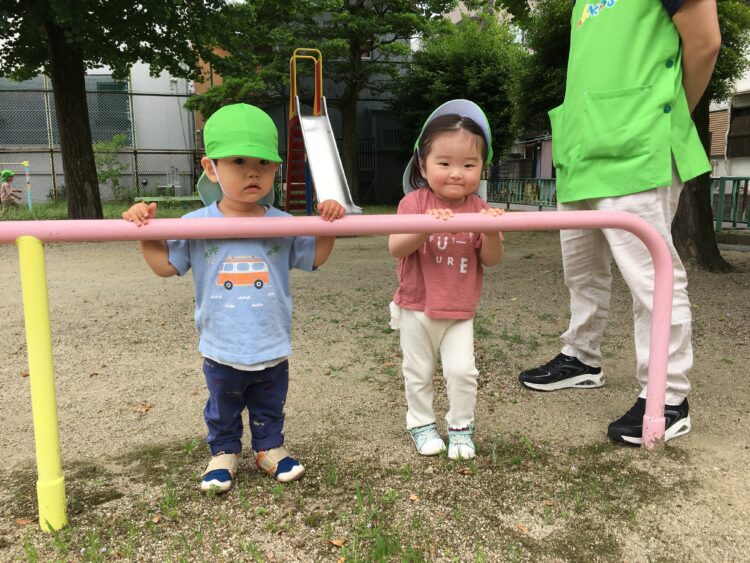 ばなな組さんは初めての鉄棒でしたがチャレンジ精神旺盛で、ぶら下がりに挑戦するとしっかりと鉄棒を握って離すことなく活動ができていました✨
