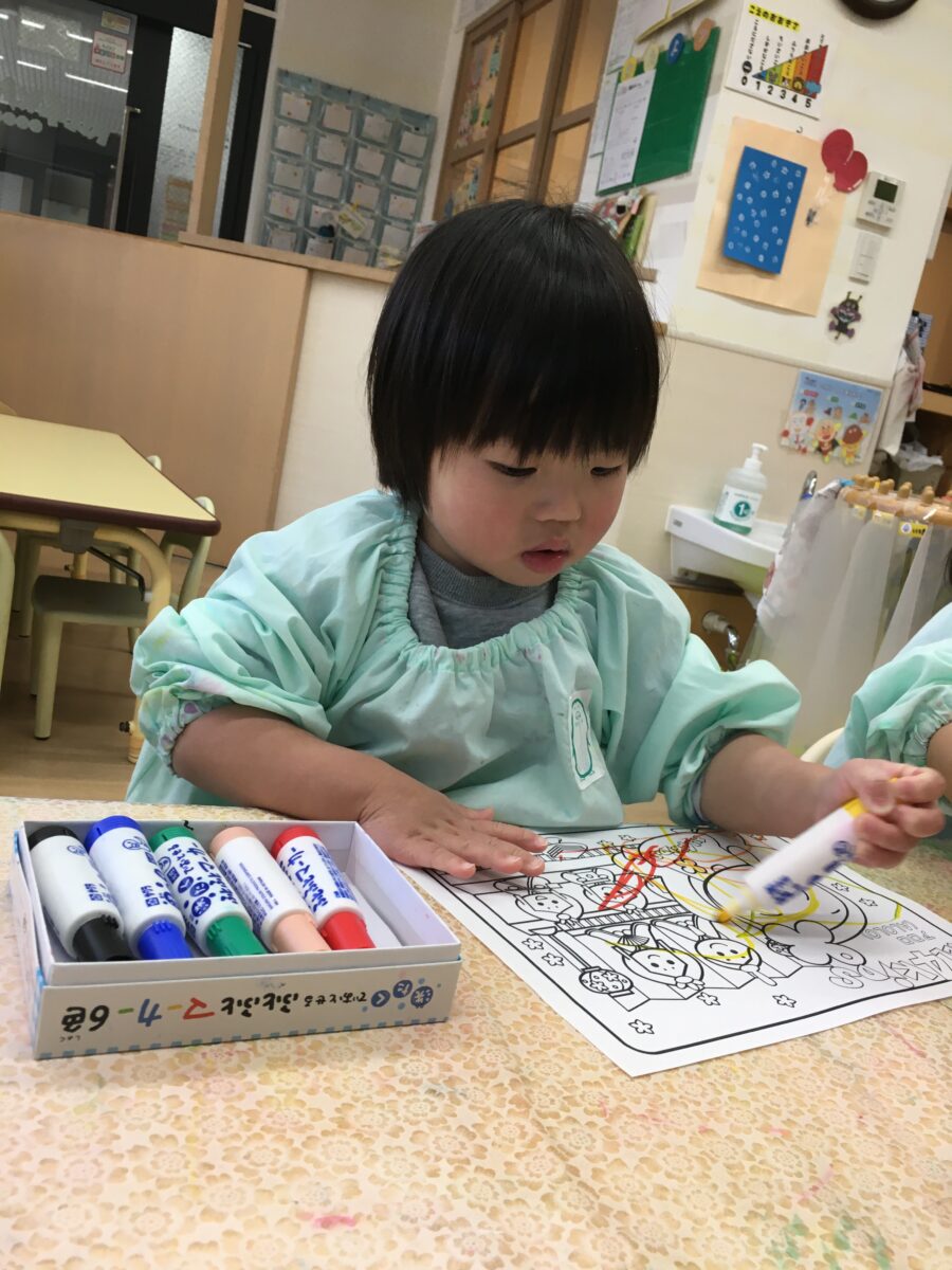 クレヨンを使ってぬっていきます♪