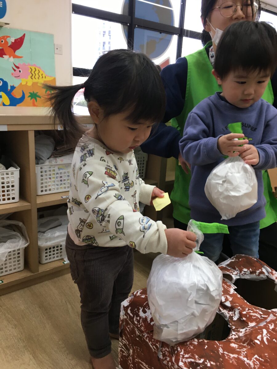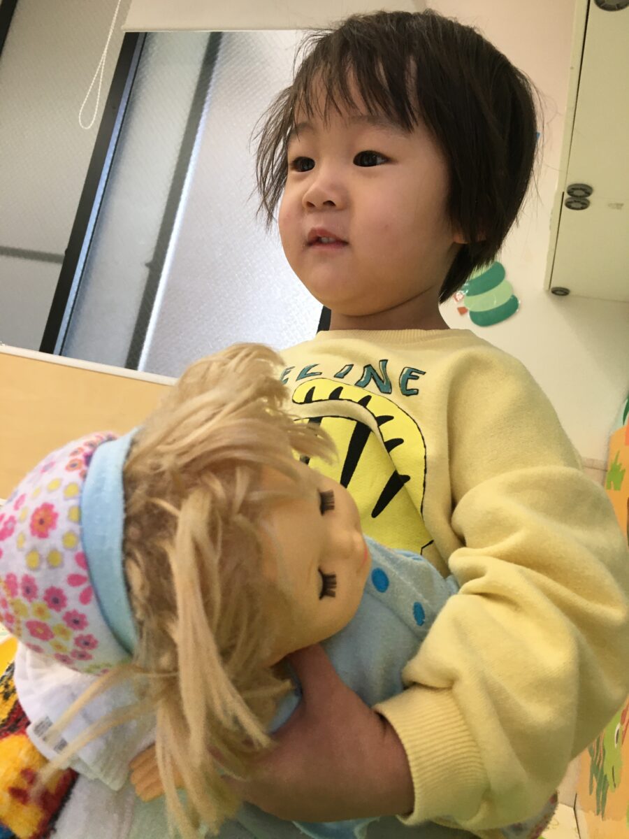 赤ちゃんを抱っこしたり、食べ物をあげたりと一生懸命お世話する姿が見られました😊