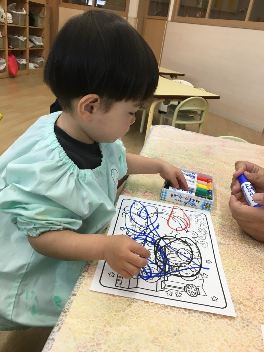 いちご組のお友達はシール貼りが少しずつ上達してきて、自分で台紙から取って貼れる子もいましたよ✨