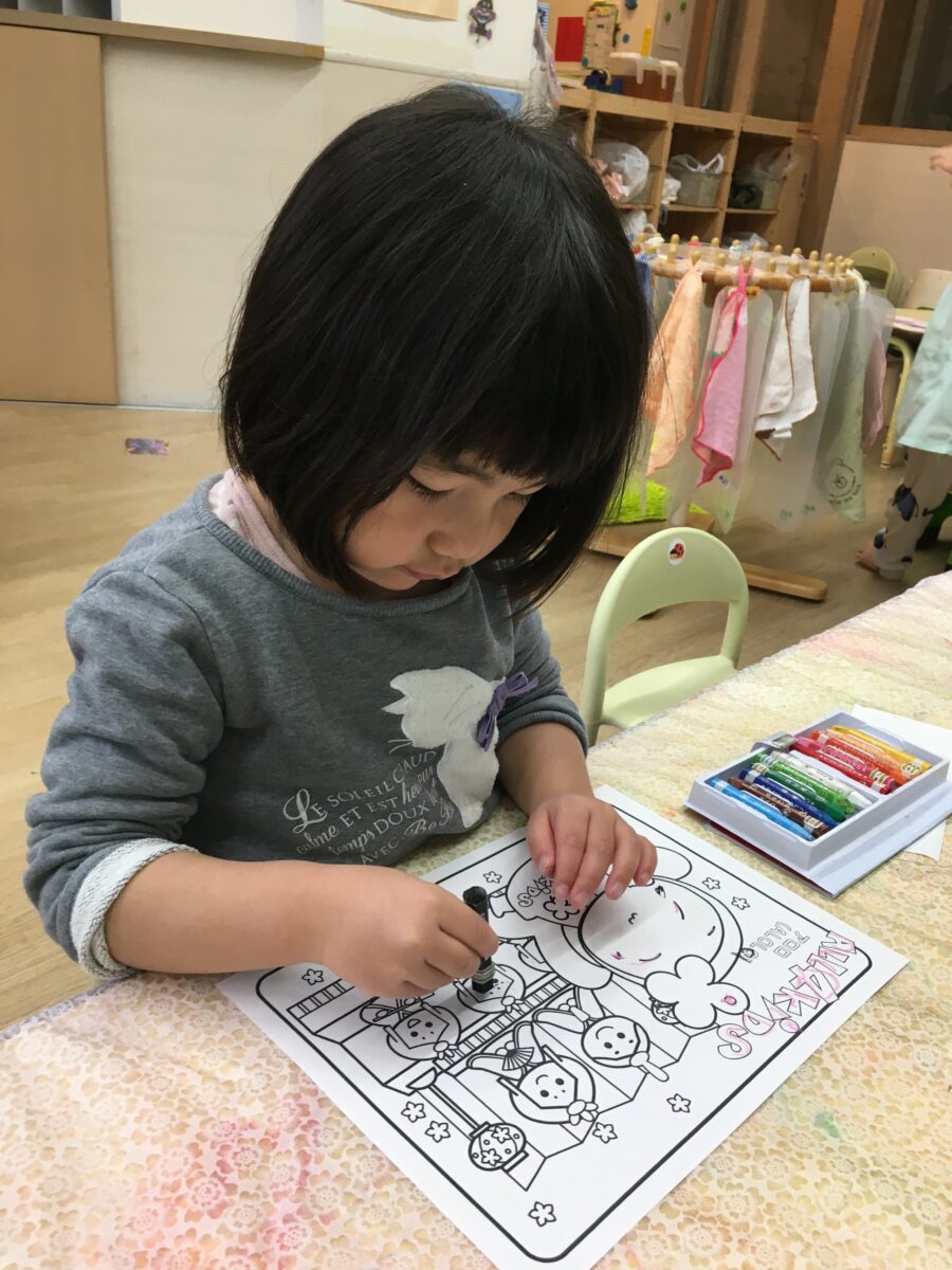 ひな祭りのぬり絵をする子もいました!