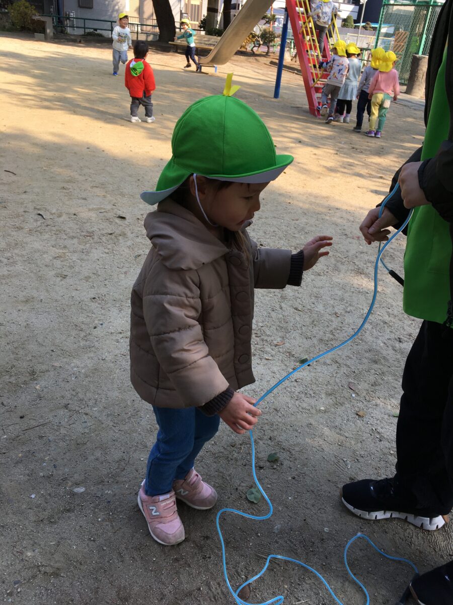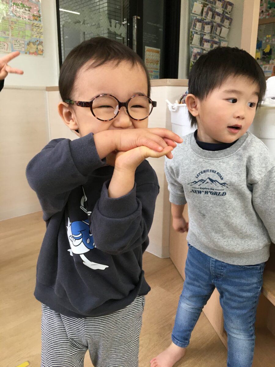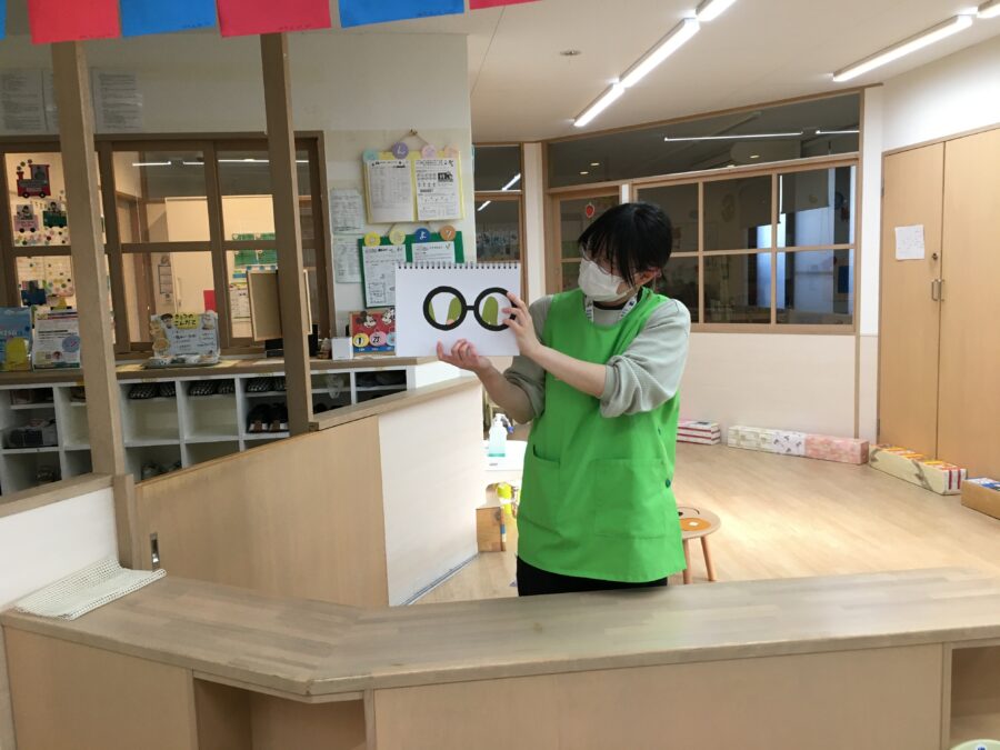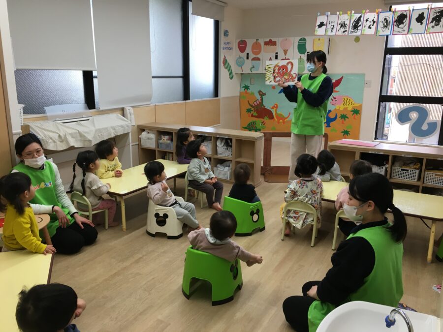 豆まきの紙芝居で、いろんな登場人物がユニークな豆まきをする内容で、次のページに行くのが楽しみで仕方が無い様子でした😆