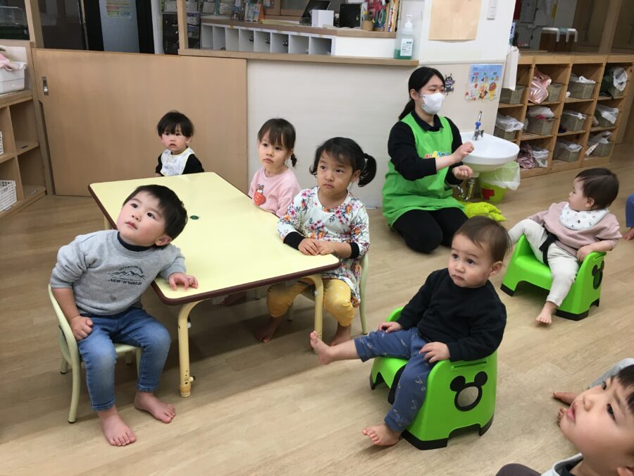 めろん組さんは、自分の番が待ち遠しくて、先生の「ならんでね」の掛け声で一瞬で立ち上がり1番を取り合うほどやる気に満ちていました🤣