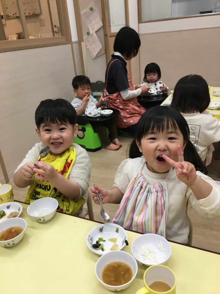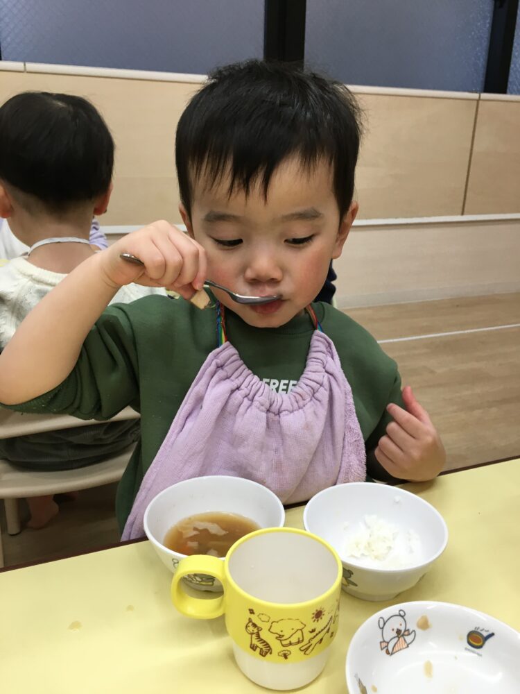 栄養たっぷりの給食を、子どもたちはモリモリと食べていました。食べている時の子どもたちの笑顔から、「おいしい!」という気持ちがたくさん伝わってきました。