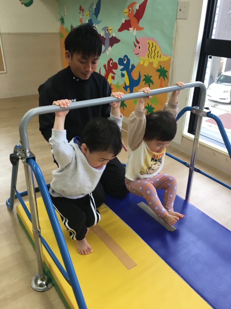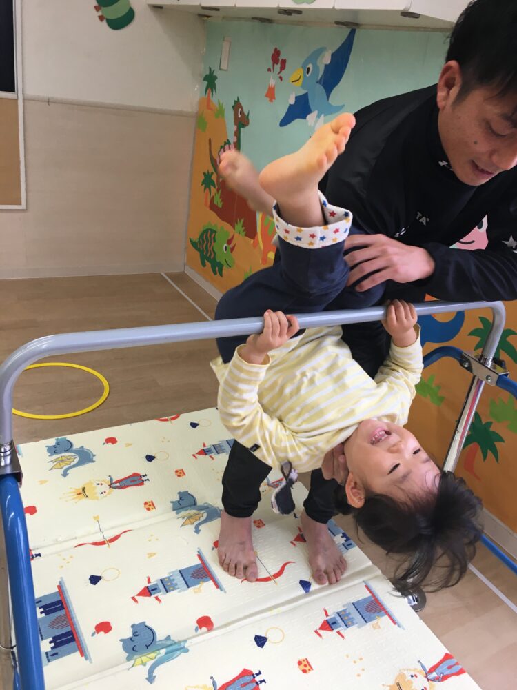 鉄棒のぶら下がりでは、脚を曲げてぶら下がれるようになり、成長を感じて嬉しくなりました。
