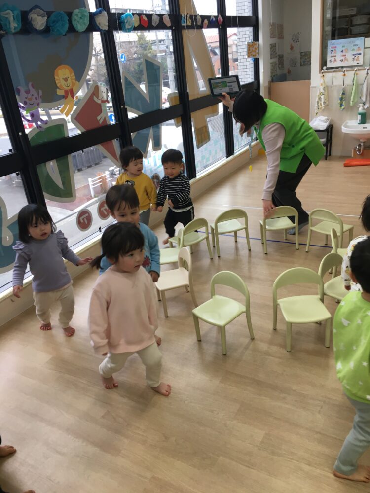 今日は椅子取りゲームをして遊びました。