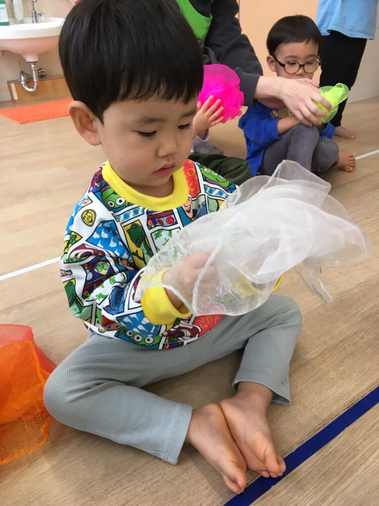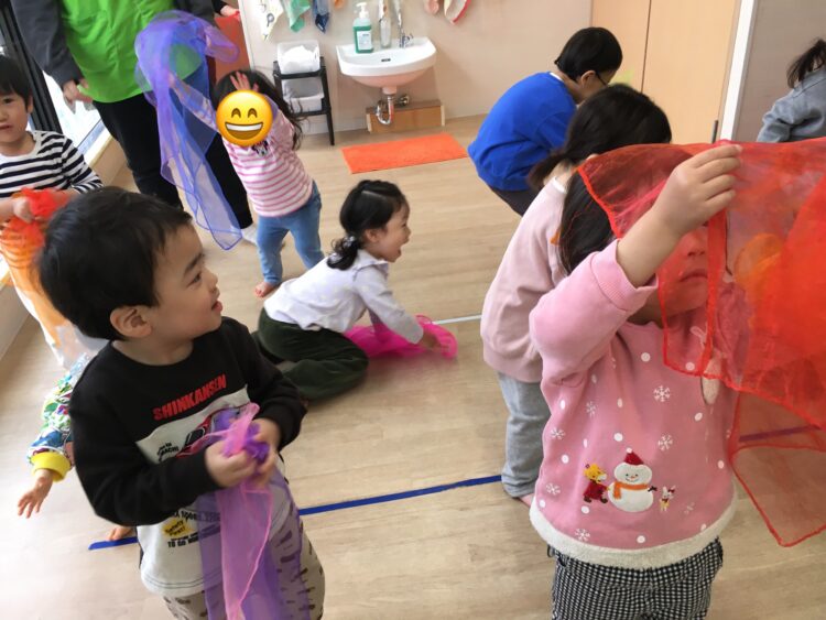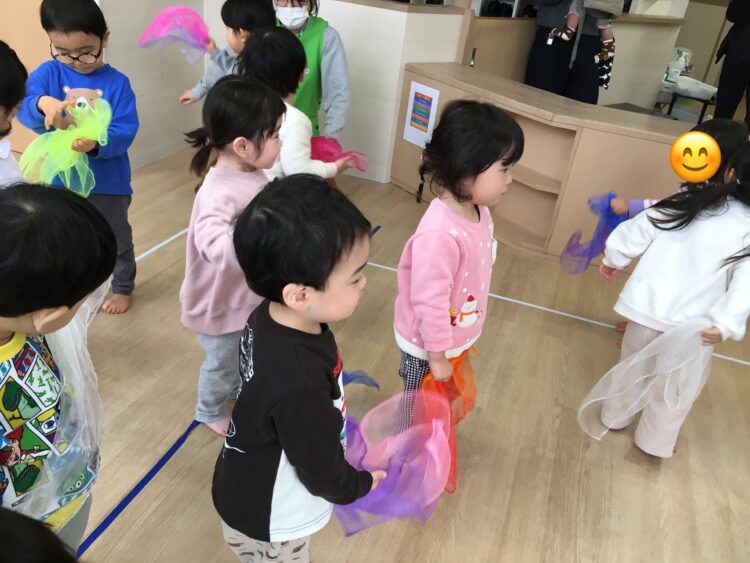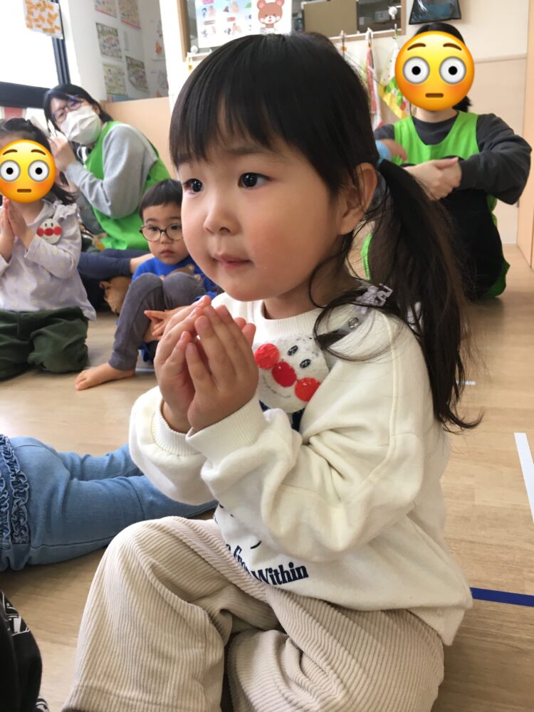 ばなな組さんと、いちご組さんは、まだルールが定着はしていないものの、めろん組がしていたことを真似しようと、子どもたちなりに考えながら参加していました😆