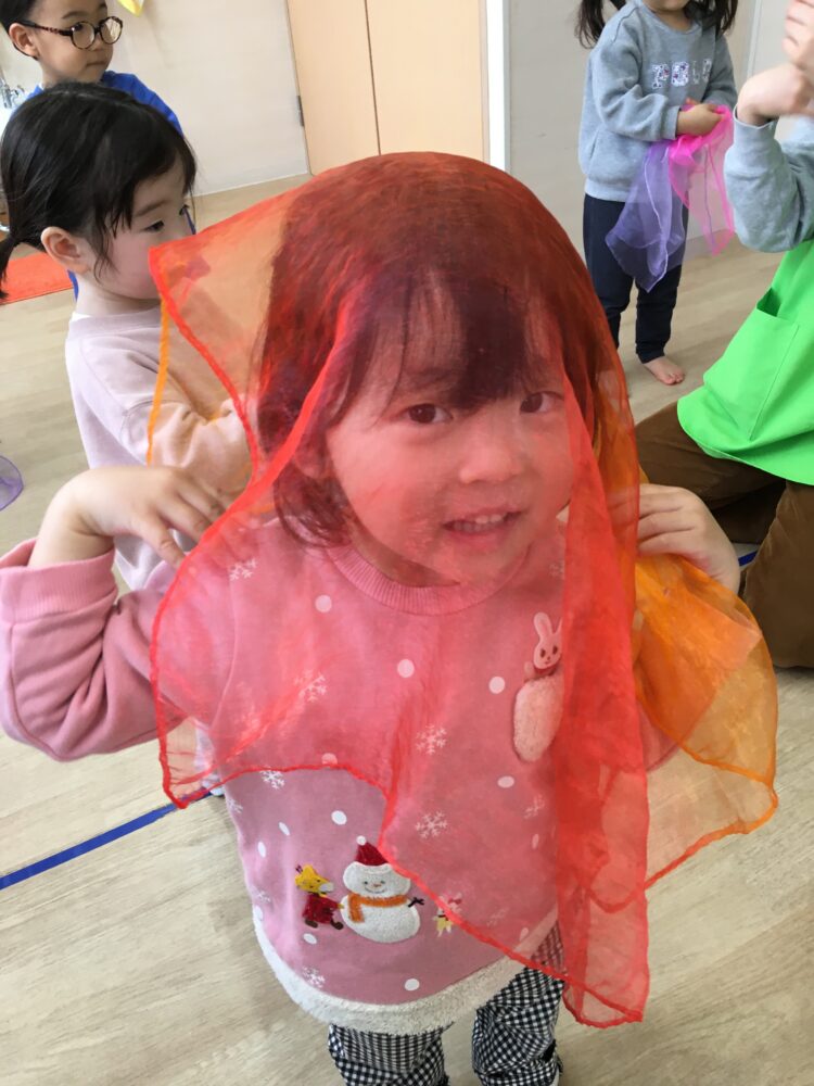 曲の最後に、みんなで一斉にシフォンスカーフを上に投げるのが、とても楽しそうでした😆