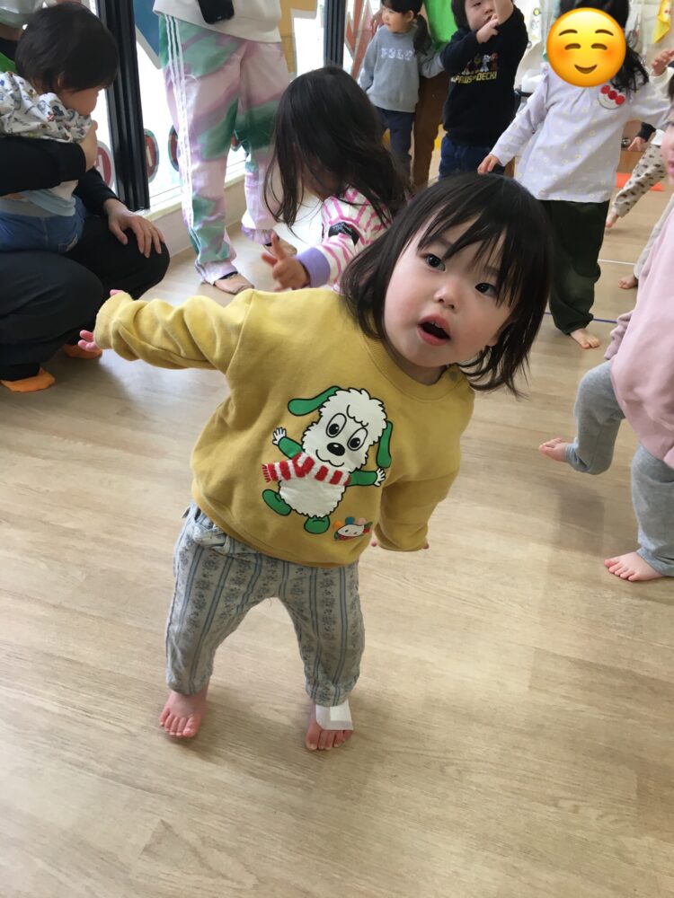 笛の音が「ぴっ」となると、空いている椅子を指さして「これすわっていいの!?」と言っているような表情で保育士の方を見ていて可愛らしかったです☺️