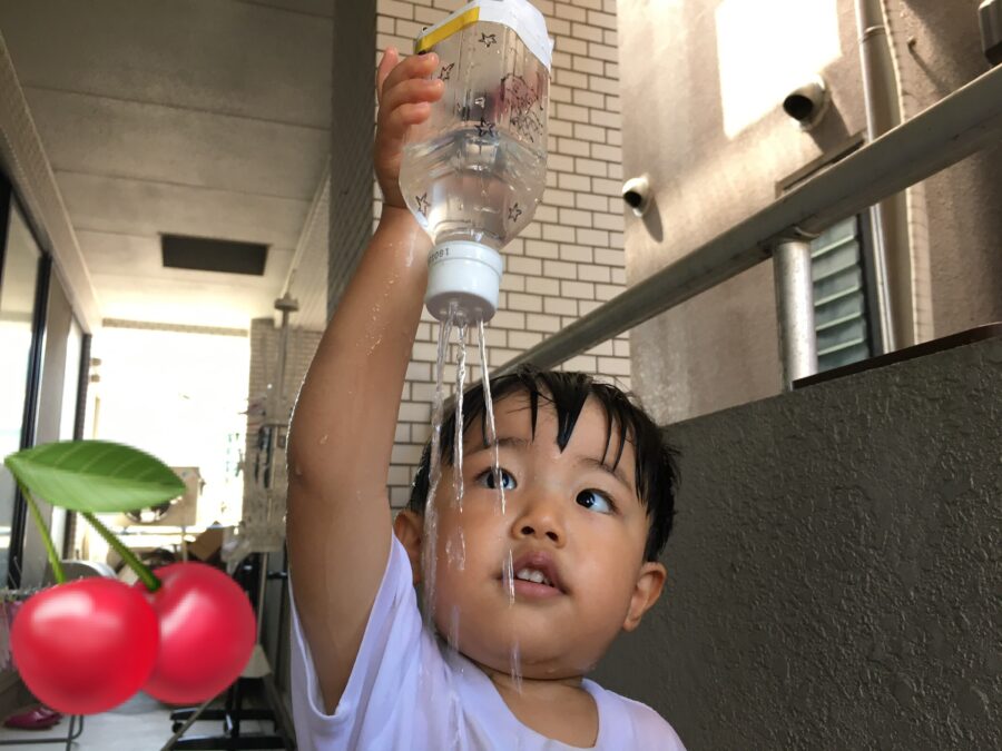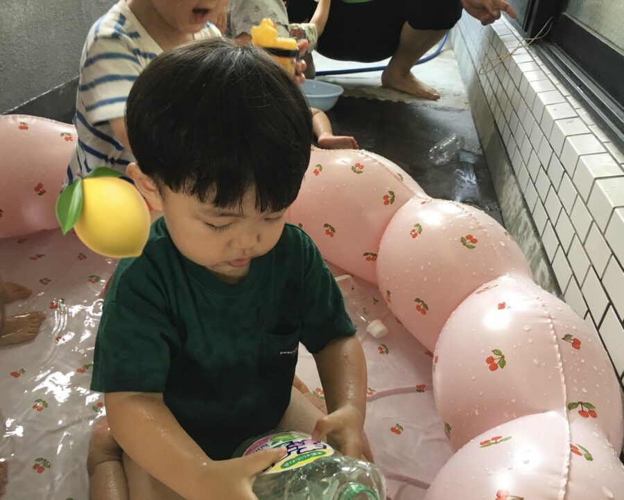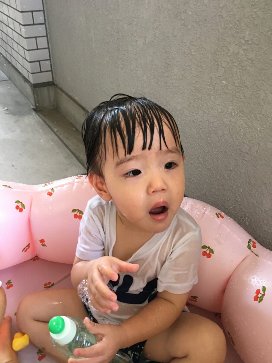 先生や友達と水のかけあいっこをして、みんな大はしゃぎでした😆