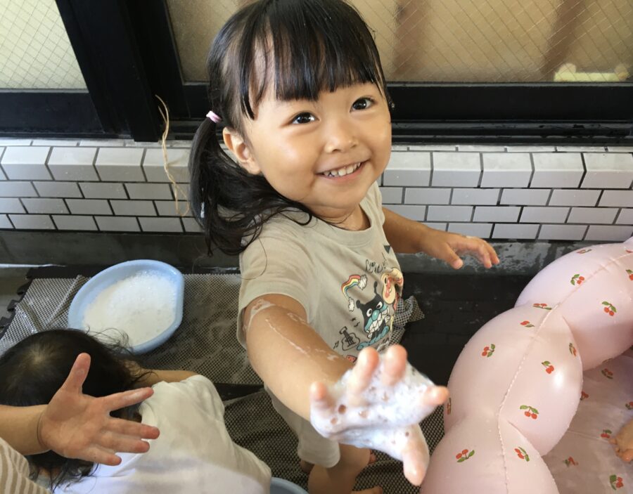 たくさんのモコモコの泡を触って、感触を楽しんでいましたよ。